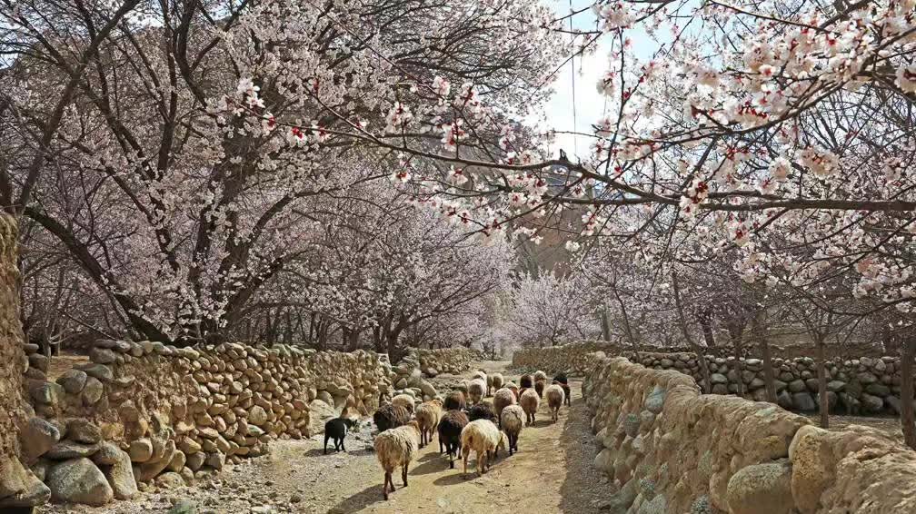 今天将开始拍摄杏花,抵达阿勒玛勒克村,这里是杏花密集区,有大片的老杏树,整个村子基本被杏花覆盖,还有很多淳朴的塔吉克人。村民都是塔尔塔吉克族,以前都是石头房子“穴居”。春天,塔吉克人在杏花下劳作、牧羊,羊群悠悠然吃着草,鸡在墙边觅食,山崩地裂似乎它们没关系,时光仿佛停滞千年未变。每年的3月底到4月中旬,是杏花盛开的季节。每当花开时,在帕米尔高原上的居民和杏花构成了一副副仙境般的画卷,宛如世外桃源,有了杏花,更为帕米尔高原增加一抹绚烂的色彩。后前往巴格艾格孜村,这里是观花海的绝好去处,村庄里异域风情的塔吉克人是寂静山庄中的烟火气息,静静守候着古老的村寨。来这里能感受原始的自然风情,杏花的花香随风飘散,清香淡淡,如纱似雾,沐浴着春天的阳光,装饰着古朴的村落。戈壁苍凉粗粝,连带着当地特有的杏花都带着野性的粗犷美,村庄几乎被杏花树铺天盖地包围,热闹盛开,堪称一场视觉盛宴。夕阳西斜,未尽黄昏,村庄里开始三五根的缕缕炊烟,惹的杏花花枝乱颤,像是被烟冲晕了似的。房前屋后,阡陌红尘,丝丝晚霞,恰巧落在杏花深处。住:当地百姓家(大通铺、公卫,条件艰苦)