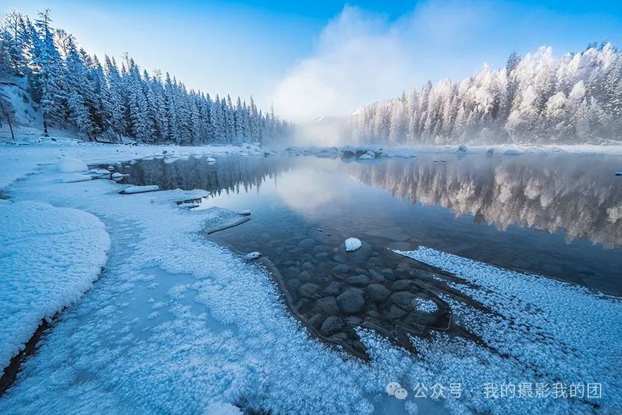 早起沿喀纳斯河边走边拍晨曦中的“仙人点雪—神仙湾、白雪映月—月亮湾、巨龙嬉雪—卧龙湾、雾凇长廊—喀纳斯河”,冬季的喀纳斯变得分外美丽,气势磅礴的莽莽雪原,白雪皑皑的雪峰、银装素裹的桦林雾凇、悬崖边的雾凇“雪蘑菇”…… 尤其是晨雾弥漫的神仙湾,还有喀纳斯河水在这里划出的是世间最美妙的一道弧线,即便是在冬季,这道弧线依然最为抢眼,像国画大师自然而又夸张的神来之笔,所有景物构筑了喀纳斯独有的绝世胜景!沿途择机拍摄白茫茫的阿勒泰山林海雪原、树挂奇观、雪地中的白桦林,冬日的阿勒泰风光别样,没有多余的色彩渲染,只有雾凇挂满枝头,大雪覆盖满山,白桦林从山巅一直蔓延到山脚,但意境尽显。尤其在阳光的照耀下,又增加了一抹白色,以致于留下唯美的画面!每个季节都无可挑剔的景色,但到了冬天愈加迷人。此时的阿勒泰山沿线变得气势磅礴,晶莹剔透的雾凇、白雪皑皑的冰湖,在冰雪和浓雾的装点下,美过仙境,让人看一眼就怦然心动。住:布尔津