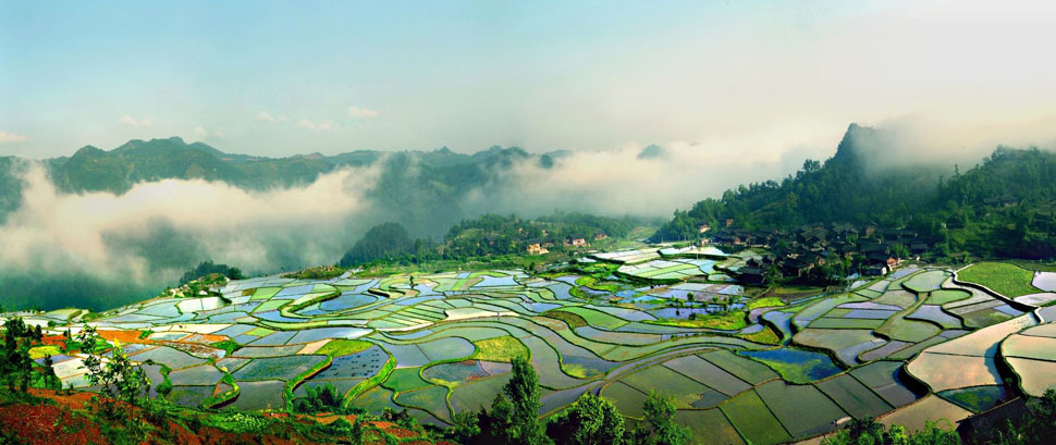 早起前往高要梯田,拍摄高要梯田面积千余亩,地势由高到低呈明显梯带形状,该梯田景色随季节变化而变化,不同季节有着不同的感觉色彩。大细田块近千块,从山脚盘绕到山顶,层层叠叠,高低错落有致,仿佛是一册册千年的古书。梯田的线条曲折优美,潇洒流畅,又如行云流水,如诗如画,立体感之强,色彩之美,集壮丽与秀美为一体,形成了一部空前绝后的田园诗!中餐后返回贵阳散团,结束愉快的多彩贵州摄影创作之行。