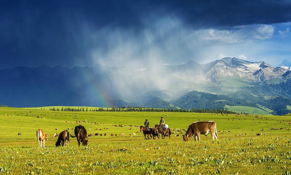 早乘车前往那拉提草原。那拉提草原是发育在第3纪古洪积层上的中山地草场,东南接那拉提高岭,势如屏障,西北沿巩乃斯河上游谷地断落,地势大面积倾斜,山泉密布,溪流纵横。晚抵达那拉提镇后入住酒店。住:那拉提