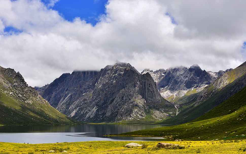 早起前往青海的【年保玉则】景区拍摄(含门票),年保玉则又称果洛山,进入景区,站在景区的入口仙女湖畔,芳草萋萋的草甸上织锦般洒落着各色野花。而蓝色湖水背后,则伫立着年保玉则的皑皑雪峰。夏天的年保玉则,就是天神的后花园,漫步其间,花海更加迷人,静静感受她的美丽纯净,大家可以尽情、近距离的拍摄仙女湖畔的神山圣水美景(体能尚可的可以徒行到湖畔深处,妖女湖在神山脚下,这里人烟稀少,徒步单边6公里,途中会穿越荆棘和湿地,路况复杂,往返耗时约4-6小时,量力而行),拍摄结束后适时离开前往斑玛县城入住。