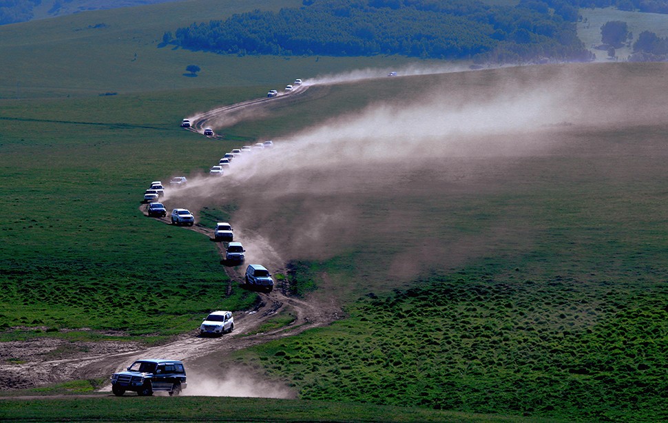 上午:早起敖包吐日出晨曦、晨雾,而后安排专场逆光下气势磅礴、尘土飞扬、场面宏大的“万马奔腾”、小圈套马表演拍摄;