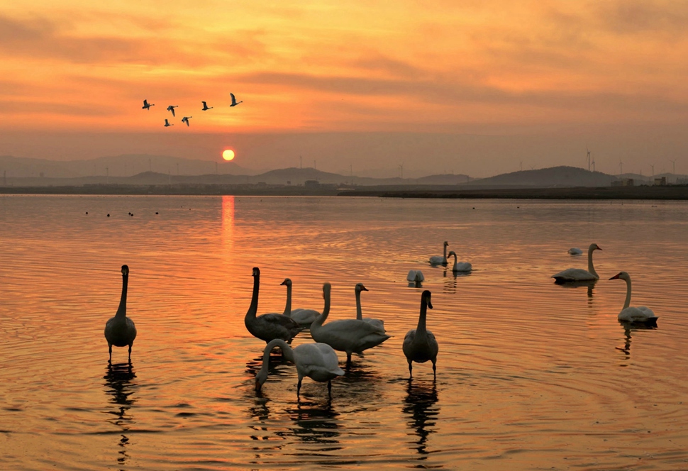 早徐州出发前往著名的拍摄天鹅圣地——荣成烟墩角(早餐自理),下午抵达天鹅湖近距离拍摄野生天鹅,洁白的大天鹅成群结队或追逐戏水,或引吭高歌,或凌空翱翔,或翩翩起舞,小海湾顿时变成了天鹅的人间乐园。傍晚拍摄落日时分的天鹅湖晚霞。 住:烟墩角