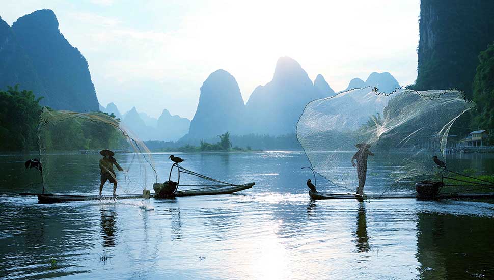 2. 在漓江边安排人文风光题材拍摄,亲临拍摄以20元人民币图案为背景的漓江风光,安排渔夫、鱼鹰、渔火、竹筏表演拍摄,结合喀斯特山水风光,充分保证高出片率,这里每年吸引了无数的摄影家和摄影爱好者青睐!