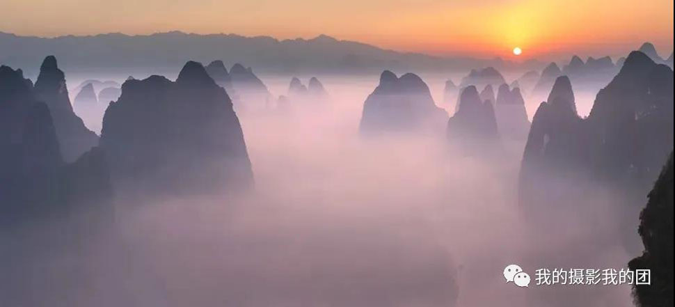 早起前往黄姚赏日出的一大圣地---东潭岭,登临山顶可俯瞰整个黄姚的喀斯特地貌, 这里因有海拔716 米的山峰,常年经常云雾缭绕、连绵起伏的山峦群峰林立,尤其是层层叠叠的峰峦间云雾若隐若现,如诗如画,大气磅礴,梦幻缥缈。晨起时,远处云海翻腾,旭日东升,一座座山峰座落在眼前,一朵朵浮云仿佛触手可及,自然环境甚是优美,美的让人窒息,美的让人心旷神怡!从春季田园灌水到秋季都有各种不同素材可拍摄,不过拍风景主要还是看运气哦!自有“峰丛古镇,梦境黄姚”就是出自东潭岭。东潭岭,无处不风景。多个协会在此设立拍摄基地、创作中心,确实是个适合拍摄日出的好地方!后适时下山集合乘车返回桂林指定点散团!结束愉快的“秋摄广西之龙脊梯田、桂林山水、漓江渔火、相公山、崀山八角寨、黄姚古镇、东潭岭”风光摄影之行。