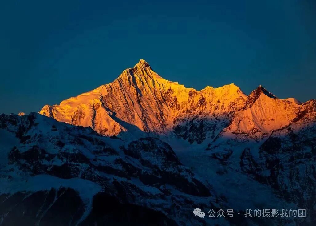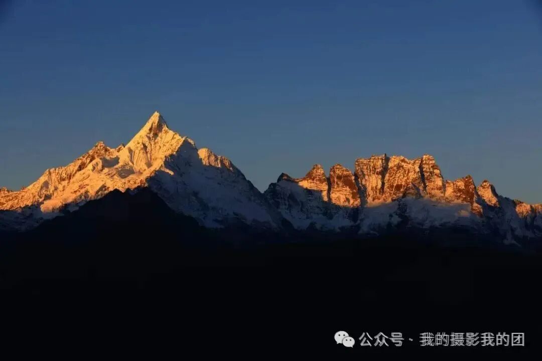 早起再次拍摄神秘的梅里雪山日照金山,20分钟里金光映照的卡瓦格博、缅茨姆光芒万丈、美不胜收。这里平均海拔在6000米以上的雪山有13座,主峰卡瓦格博峰海拔6740米。由于气候原因,梅里雪山常年笼罩在雪幕和云层里。梅里雪山既有雪域高原的壮丽,又有江南的秀美。蓝天之下,洁白雄壮的雪山和湛蓝柔美的湖泊,莽莽苍苍的林海和广袤无垠的草原,无论在感觉上和色彩上,都给人带来强烈的冲击。后前往原始傈僳族古村落拍摄,一个村庄几乎没有人会汉语,但是你会看到感受到人与人本性的热情、真诚、友善。从远处看全景,可以看到,这里依然保留的数百年傈僳族最原始的木板盖顶的木楞房,木楞房屋依山势而建,鳞次栉比,家家相叠,户户相连,百余户屋舍形成聚落,不时有袅袅的炊烟从木屋中升起,在向阳山坡上是那样的赏心悦目。作为澜沧江流域典型的最古老、最具特色的傈僳族村寨,整个村寨只有百余户人家,几乎全部都是傈僳族人,是维西县最具代表性和最古老的傈僳族山寨。具有浓厚的原始性和自然性,讲述了僳僳族在漫漫历史长河中的发展历程。途中将拍摄雄伟的澜沧江大湾风光。住:维西