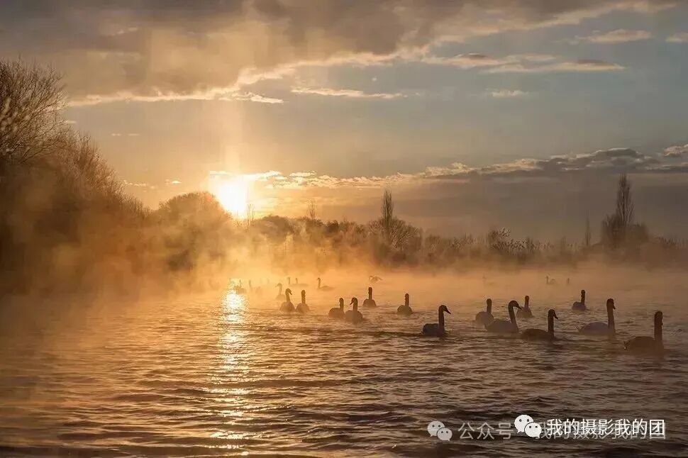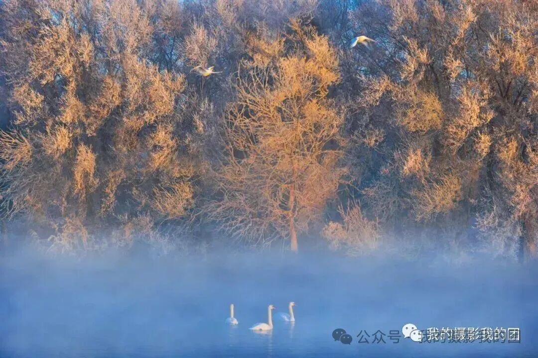 早起前往“与世无争的世外桃源”的天鹅泉拍摄晨雾中的天鹅泉(含门票),这里生活着一群洁白的精灵,它们整日在冰水里游戏。独特的气候环境和水汽,使得天鹅泉常常能看到树挂,晨雾中的天鹅,与雾凇融合在一起,简直美如仙境。冬天日出时间较晚(大概10点左右日出),冬日天鹅泉湖面上成群的天鹅在悠然嬉戏,天鹅的各种姿态,远远望去,仿佛点点白帆,天鹅湖上美丽的自然风光和湖中优雅的天鹅尽收眼底。今天拍摄时间非常充足,可以满足不同风格的拍摄,可以近距离感受野生天鹅与天鹅看护人和谐相处的场景!每年11月初至次年4月都有疣鼻天鹅(国家二级保护鸟类)在此越冬,数量已从最初的几只发展到如今的百余只,天鹅泉湿地保护区是伊犁河谷唯一一处冬季天鹅栖息地,环境优美,目前,已经成为全国有名的冬季天鹅栖息地,每年入冬都吸引了大批来自全国各地的天鹅保护爱好者、摄影人和游客前来观赏!住:伊宁