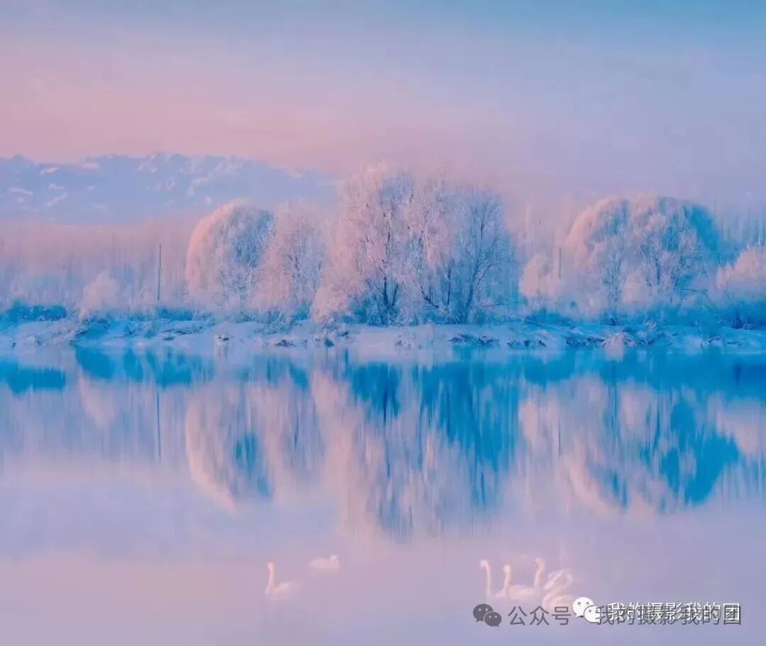 今天将根据前一天的拍摄的情况,为了尽可能拍摄到比较满意的作品,不留遗憾,我们将视天气情况,决定是否选择二次进入天鹅泉补拍,以弥补不足之处。相信有了前一天的拍摄经验总结及拍摄地形和天鹅的习性后,大家尽可能拍摄到更多风格、创意、想法的心仪佳作。后适时离开,沿途择机拍摄伊犁河谷雪景风光,如果运气好的话,河谷两边都是雾淞景观,远处整个森林草原、山川峡谷都被厚厚的白雪盖住,已变成银装素裹,和近处的苍松白雪,相映增辉,构成新疆独特的北国冬季的风光。还有那远山皑皑冰峰,树挂、雪蘑菇等自然风光,纯净而美妙,这样盛大、壮美的雪景,称它为“最美的雪乡”一点也不过分。住:奎屯