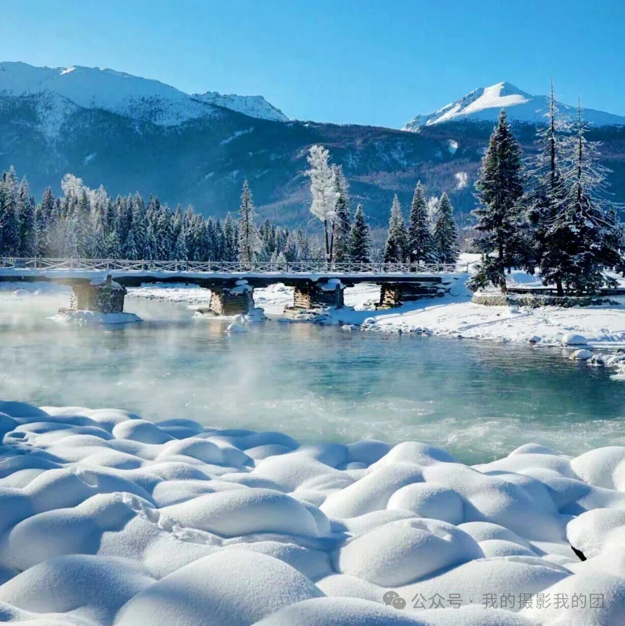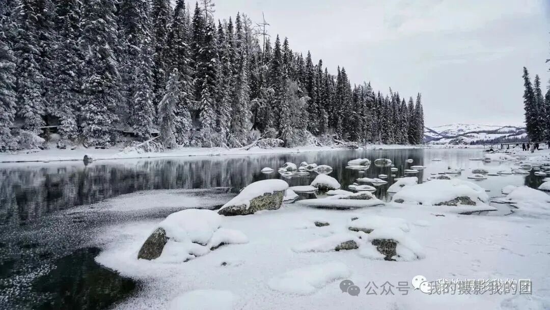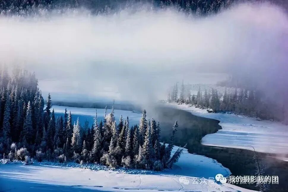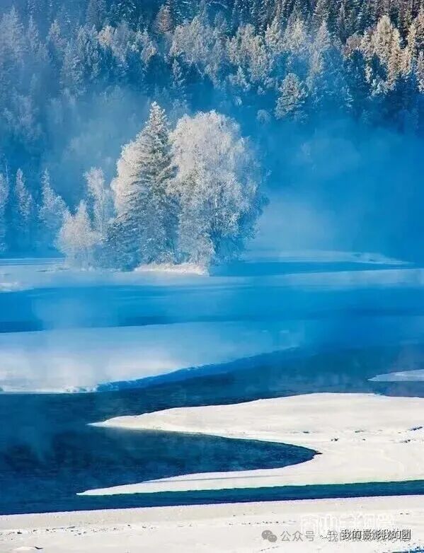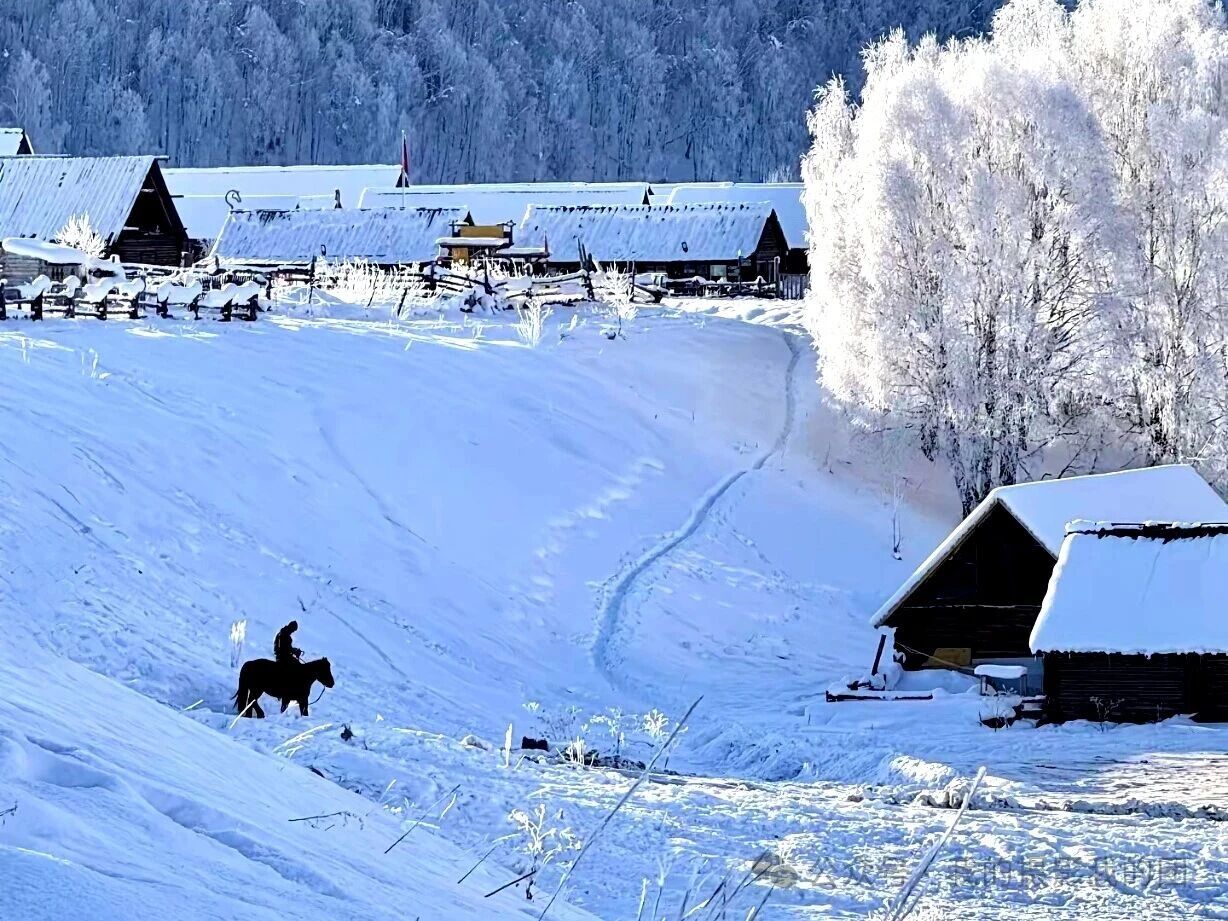 早起沿喀纳斯河边走边拍晨曦中的“仙人点雪—神仙湾、白雪映月—月亮湾、巨龙嬉雪—卧龙湾、雾凇长廊—喀纳斯河”,冬季的喀纳斯变得分外美丽,气势磅礴的莽莽雪原,白雪皑皑的雪峰、银装素裹的桦林雾凇、悬崖边的雾凇“雪蘑菇”……,尤其是晨雾弥漫的神仙湾,还有喀纳斯河水在这里划出的是世间最美妙的一道弧线,即便是在冬季,这道弧线依然最为抢眼,像国画大师自然而又夸张的神来之笔,所有景物构筑了喀纳斯独有的绝世胜景!冬日的喀纳斯湖不再有游人如织的喧嚣,取而代之的是万籁俱寂中的纯粹与静谧。沿途择机拍摄白茫茫的阿勒泰山林海雪原、树挂奇观、雪地中的白桦林,冬日的阿勒泰风光别样,没有多余的色彩渲染,只有雾凇挂满枝头,大雪覆盖满山,白桦林从山巅一直蔓延到山脚,但意境尽显。尤其在阳光的照耀下,又增加了一抹白色,以至于留下唯美的画面!每个季节都有无可挑剔的景色,但到了冬天愈加迷人,这里有你期待的冬日雪景,白茫茫的林海雪原、炊烟袅袅古村落、洁白晶莹的桦林雾凇、神秘的“蓝冰拼图”,童话世界大概就是这样吧!住:吉木乃/布尔津