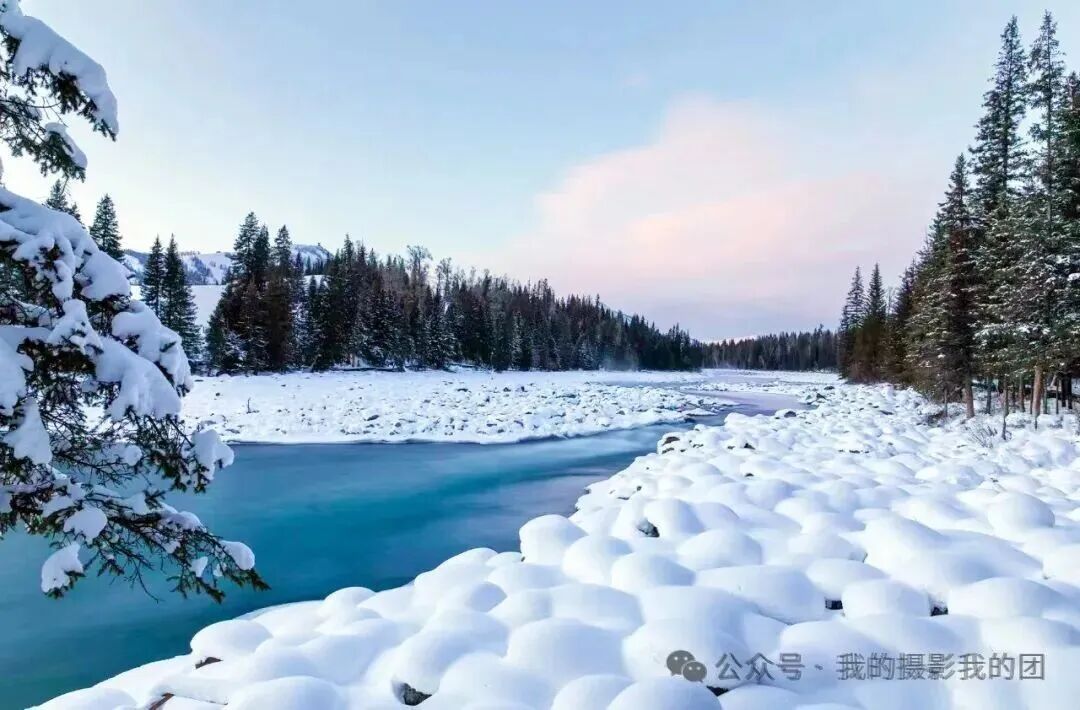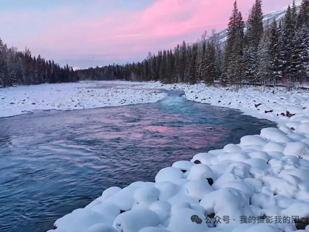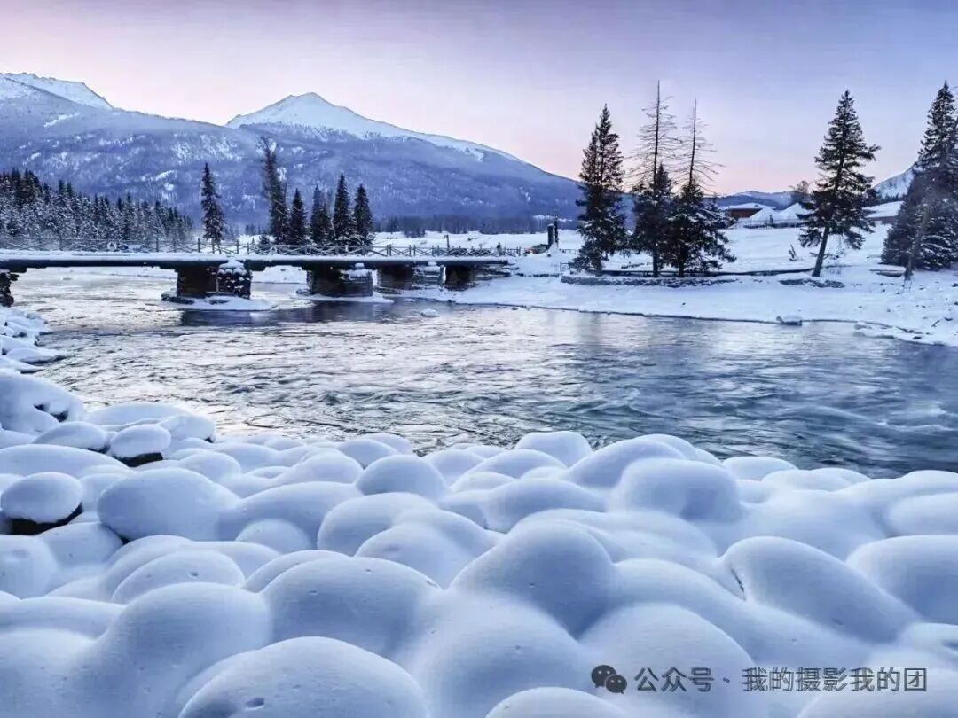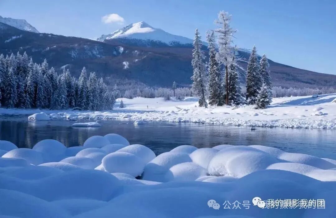 早起沿喀纳斯河边走边拍晨曦中的“仙人点雪—神仙湾、白雪映月—月亮湾、巨龙嬉雪—卧龙湾、雾凇长廊—喀纳斯河”,冬季的喀纳斯变得分外美丽,气势磅礴的莽莽雪原,白雪皑皑的雪峰、银装素裹的桦林雾凇、悬崖边的雾凇“雪蘑菇”……,尤其是晨雾弥漫的神仙湾,还有喀纳斯河水在这里划出的是世间最美妙的一道弧线,即便是在冬季,这道弧线依然最为抢眼,像国画大师自然而又夸张的神来之笔,所有景物构筑了喀纳斯独有的绝世胜景!冬日的喀纳斯湖不再有游人如织的喧嚣,取而代之的是万籁俱寂中的纯粹与静谧。沿途择机拍摄白茫茫的阿勒泰山林海雪原、树挂奇观、雪地中的白桦林,冬日的阿勒泰风光别样,没有多余的色彩渲染,只有雾凇挂满枝头,大雪覆盖满山,白桦林从山巅一直蔓延到山脚,但意境尽显。尤其在阳光的照耀下,又增加了一抹白色,以至于留下唯美的画面!每个季节都有无可挑剔的景色,但到了冬天愈加迷人,这里有你期待的冬日雪景,白茫茫的林海雪原、炊烟袅袅古村落、洁白晶莹的桦林雾凇、神秘的“蓝冰拼图”,童话世界大概就是这样吧!住:吉木乃/布尔津
