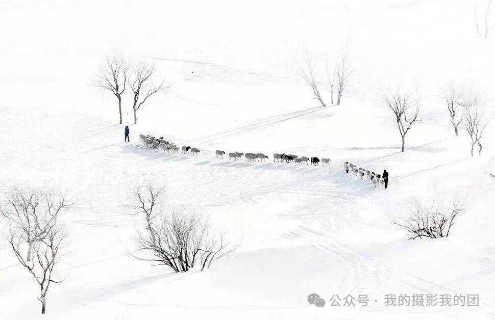 早起乘车前往影视基地拍摄日出晨雾、雪原中起伏的山川线条、冰雪中蒙古包、白桦林树挂、原野上时而散落的马牛羊畜群等雪景风光,这一切富于有变化的点、线、面构图。日出后前往私家牧场拍摄“冬季草原上的精灵---雪中梅花鹿”(安排专场白桦林中散放的鹿群导拍)。下午前往天太永沿线拍摄银装素裹的白桦林,起伏的山峦光影,洁白的雪馒头。后前往蛤蟆坝居高拍摄田园全景风光,冬天的蛤蟆坝有白桦林、灌木、篱笆、村落、溪流、散落的羊群、风雪中的牧归,构成一幅天然的水墨画卷(安排专场羊群导拍)。住:坝上