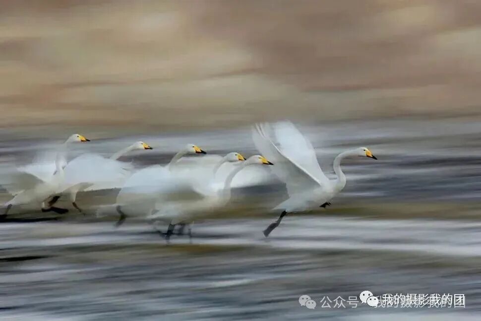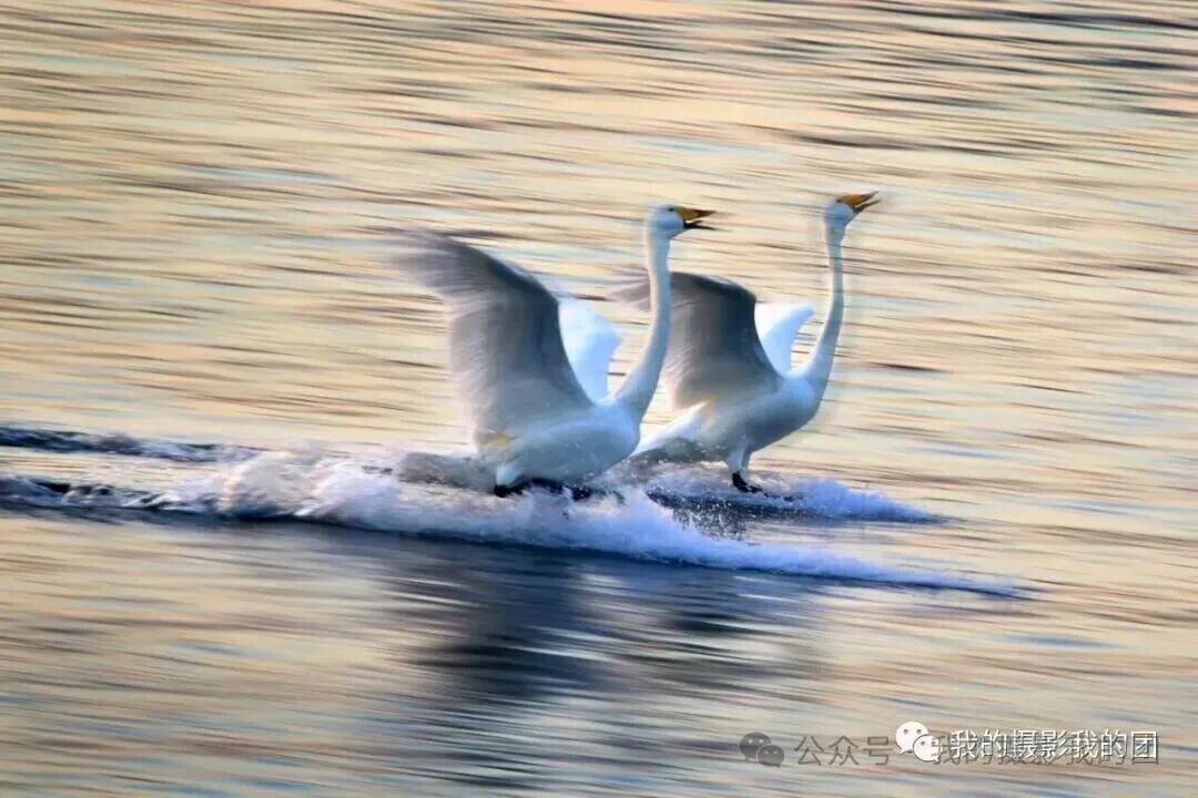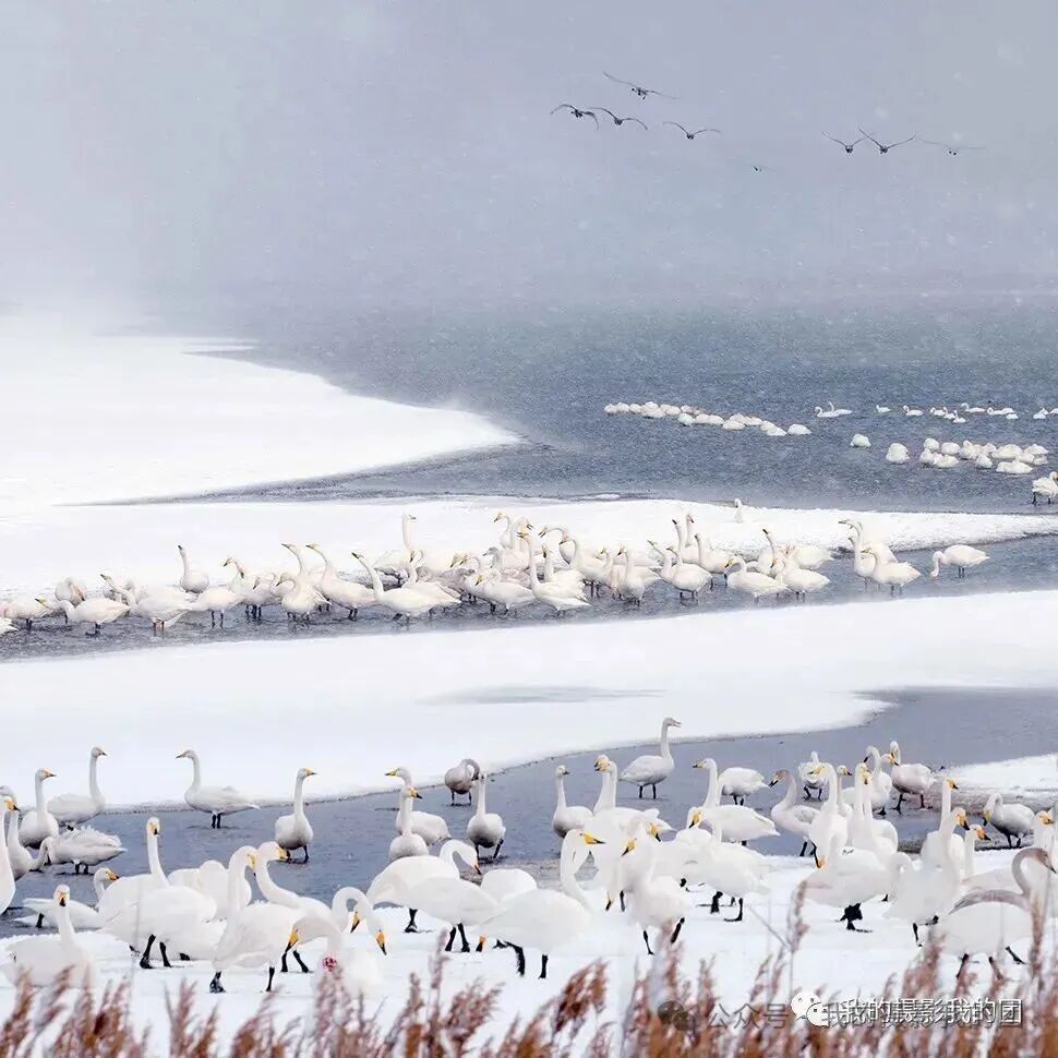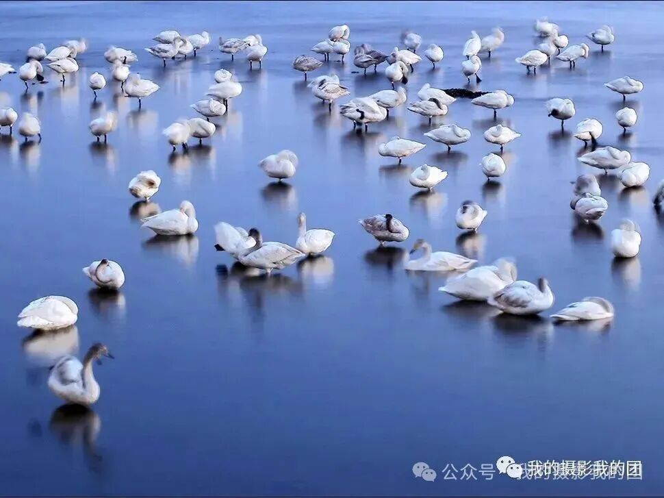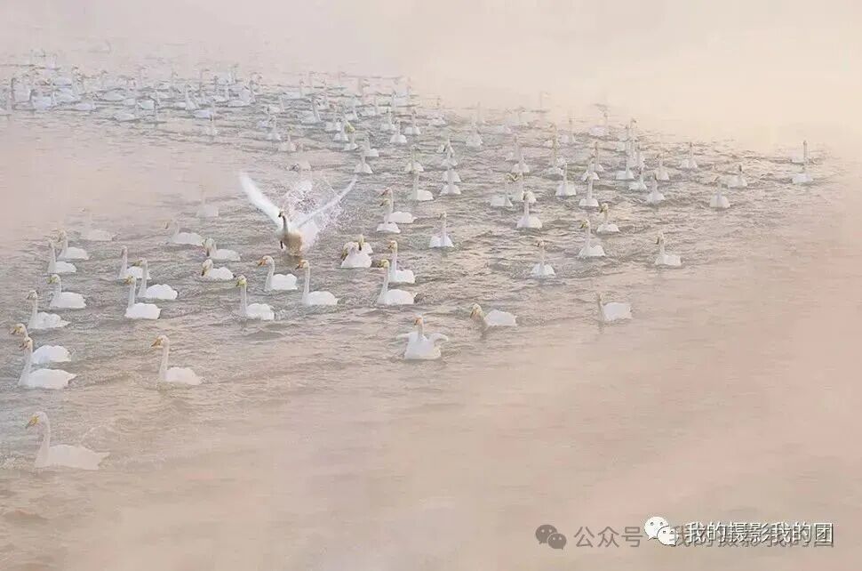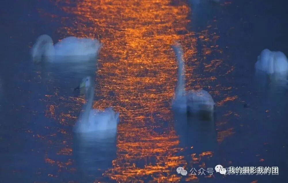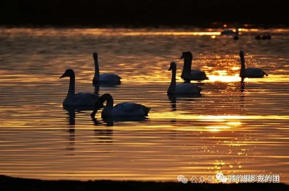 早起前往另一个天鹅拍摄地拍摄晨光中的天鹅,除人们熟知的烟墩角、天鹅湖之外,这里也是拍天鹅的不错选择,它以其秀丽的海滩风光闻名摄影界,这里的天鹅依水而栖,大群的天鹅在此过夜。这里虽然天鹅不如烟墩角多,但更具原始的野性,而且拍摄背景好,视野宽阔,是拍摄日出比较理想的地方。不论是东方日出还是夕阳西下,金色的芦苇丛中,婀娜多姿的大天鹅如行云流水,构成一派祥和唯美的动人景象。后适时集合返回青岛散团,结束愉快的“冬摄东营黄河口湿地滩涂、鸟浪、潮汐树(航拍)、眼影盘(航拍)、荣成大天鹅摄影”之行!