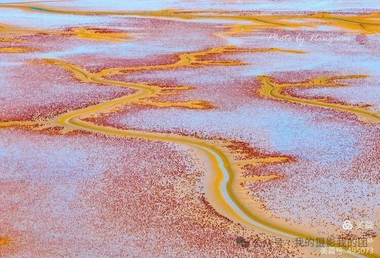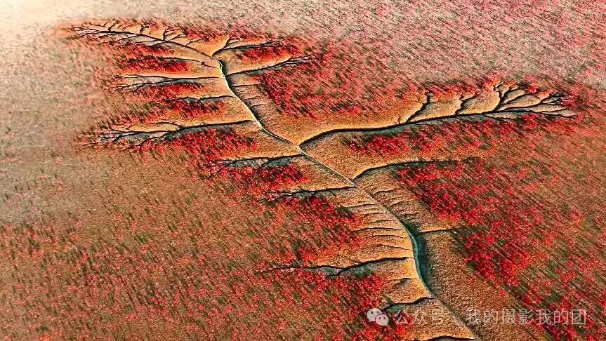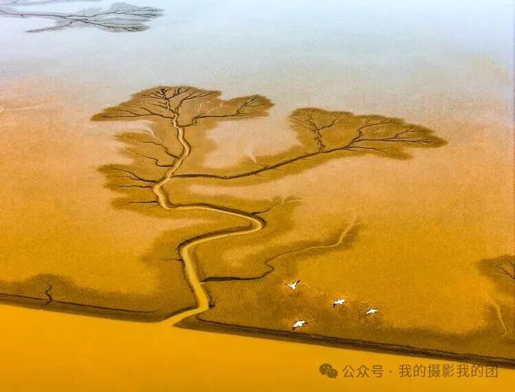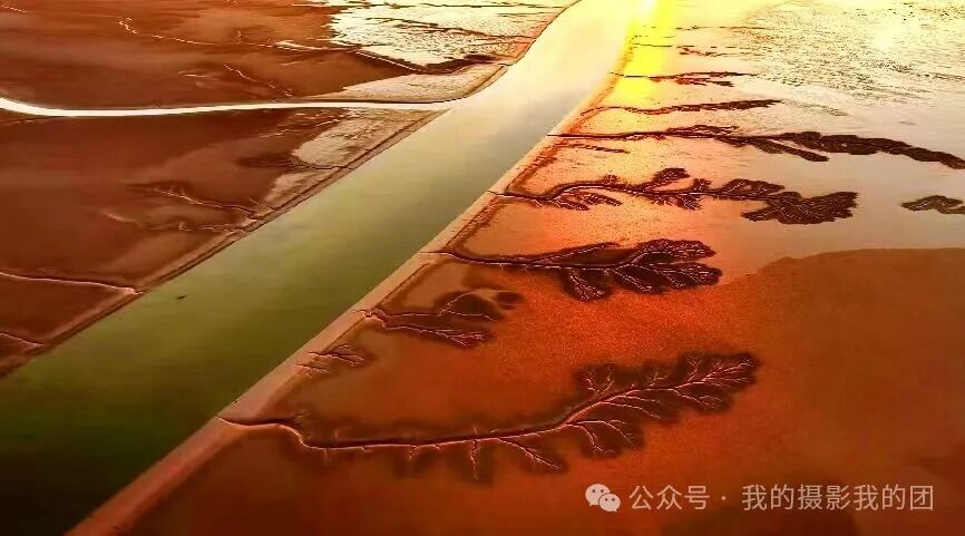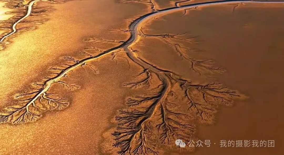 早起前往黄河湿地拍摄日出时分的鸟浪与朝霞共舞的绝美瞬间,当晨曦和暮色为湿地镀上金边时,数十万只候鸟同步振翅,如巨鲸摆尾掠过芦荡,似流云翻滚铺展天际。清晨是观鸟的黄金时段,也是鸟类活动最为活跃。每年隆冬之际,东营的湿地上空都会上演一场自然界的视觉盛宴,成千上万的候鸟集结成壮观的“鸟浪”,在天空中变换出各种奇幻的队形,仿佛整个天空都在随着鸟群的舞动而呼吸。在这里,每当潮水落潮时,黄河入海口湿地又惊出现大量“潮汐树”。从空中俯瞰,滩涂上如同红毯般展开,一条条深浅交错的潮沟如同参天大树扎根大地,形状各异,栩栩如生,宛如一幅幅镶嵌在大地上的天然画作,令人叹为观止。下午前往黄河口国家级自然保护区拍摄各种候鸟在空中盘旋、飞舞,或在水中游曳、觅食等精彩瞬间,从而形成了一波又一波的鸟浪奇观,直至落日剪影。住:东营