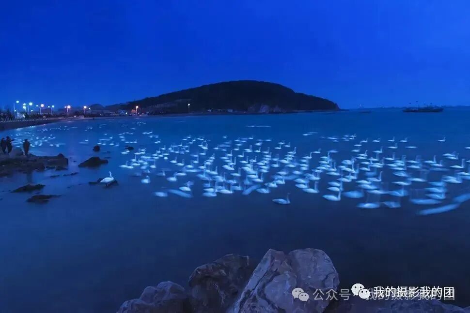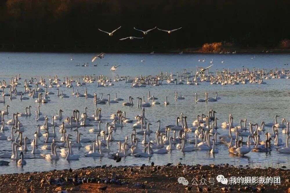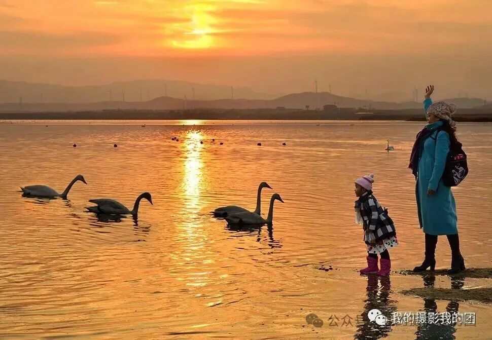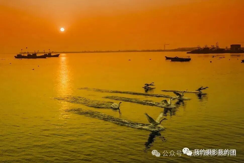 早起拍摄晨曦朝霞下的原生态天鹅,冬日清晨,在芦苇荡中,在河汊里,在广袤的田野的上空,都能看到天鹅们在腾空翱翔的魅影,大家可以尽情抓拍它们自由自在的飞翔和美丽精灵的魅力身影。每年11月入冬后不远万里地从遥远的西伯利亚飞来万只大天鹅、野鸭和大雁到来栖息越冬,成群结队,悄然降落的天鹅群,一时之间让这里成为了世界上最大的天鹅湖。此时这里已成为“候鸟天堂”。天鹅在碧波荡漾的海湾里,凌波起舞的大天鹅,捕捉天鹅嬉戏、追耍、玩闹之精彩瞬间或自在游弋,或追逐戏水,或引吭高歌,或凌空翱翔,或翩翩起舞,使人如临仙境,如梦如幻。待到日傍西山,红霞漫天,夕阳中的大天鹅们在翔空飞舞,用她们那舒展的双翅在空中划出一道道优美的弧线,飞向遥远的天际,渐行渐远,却将最美好的景象永驻在了我们心间,甚是壮观!傍晚小渔村拍摄落日背景下飞翔的大天鹅及天鹅湖晚霞风光,这里时近距离拍摄凌波起舞的大天鹅,捕捉天鹅嬉戏、追耍、玩闹之精彩瞬间的最佳场所。日落后可拍摄慢门灯光下、月光下的野生天鹅或者拍摄海草房星轨。住:烟墩角