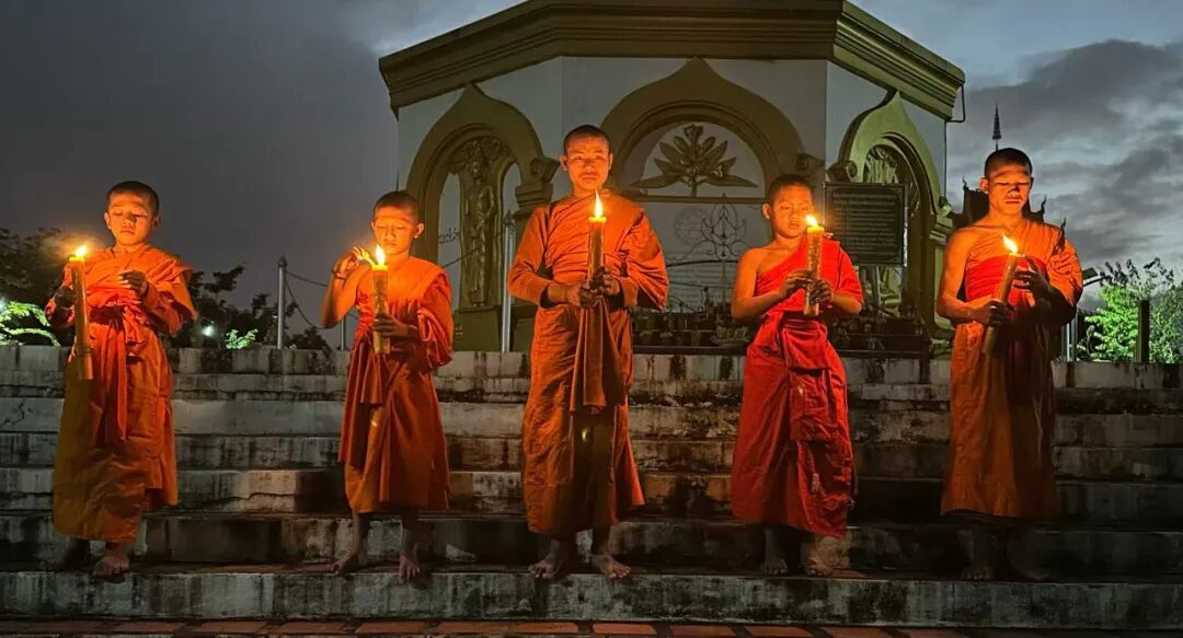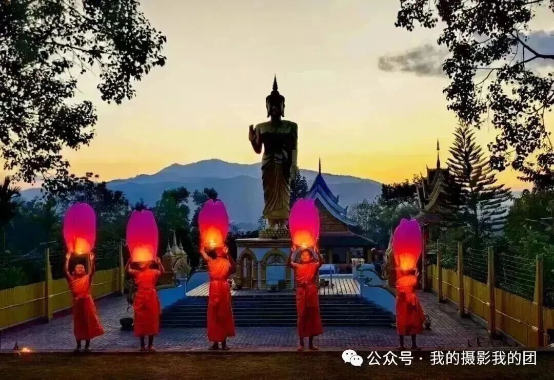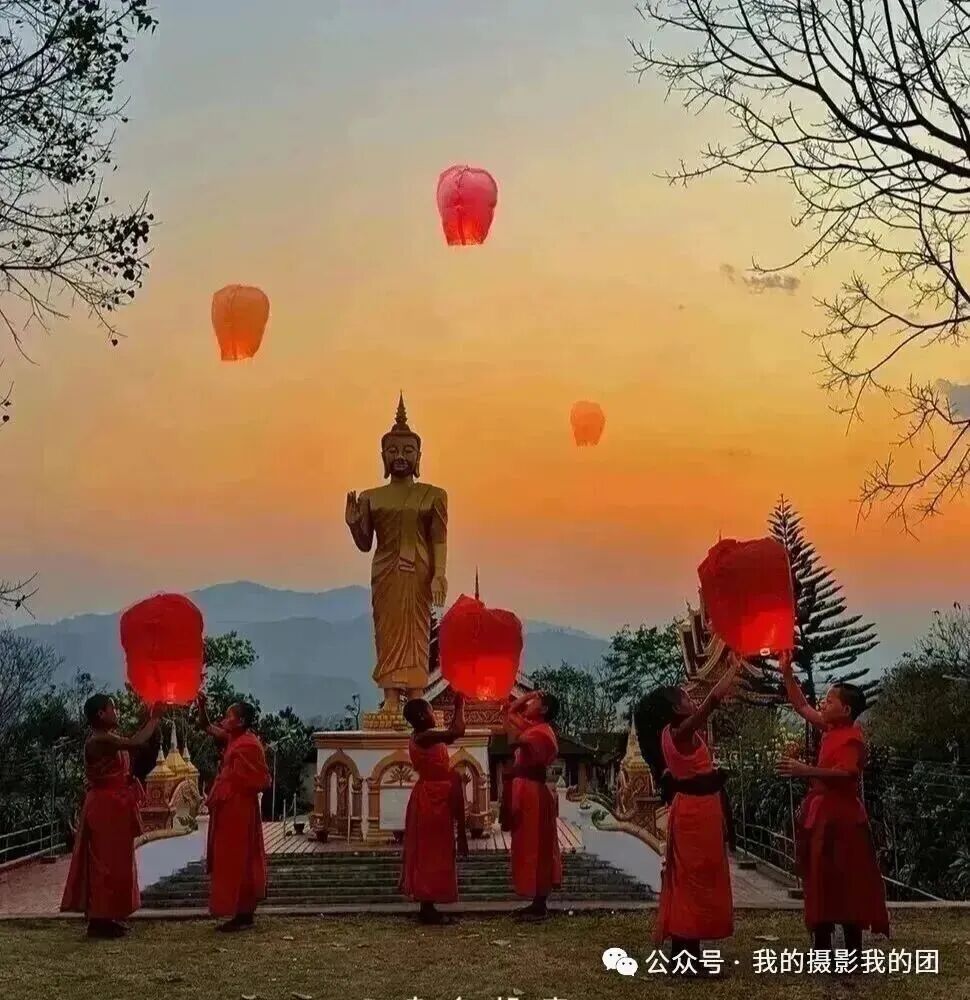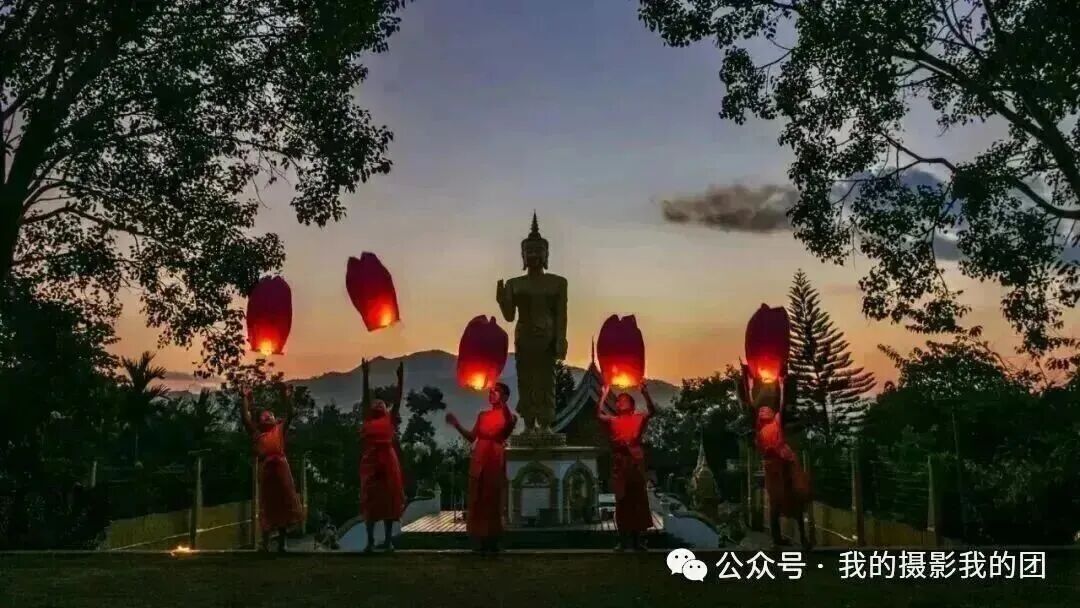 早餐后统一乘车前往昆明南站乘坐(昆明南D87;8:08---14:57)中老跨国高铁(火车上中餐不含),沿途领略旖旎的东南亚风光,用车轮和视觉记载着这片净土不一样的迷人风光!之后途中在磨憨关口办理落地签手续!下午抵达老挝勐赛站下车,出站后乘车前往酒店办理入住,稍简单休整后,适时前往独家签约的勐赛地区最大的佛学院拍摄寺院建筑及小僧侣书堂人文等,这里无论环境还是氛围,都透出一股世外禅意之境,相信用心在这里抓拍,每个人都可以收获很有价值的人文大片。随后前往勐赛地区最大的普陀寺庙拍摄寺庙落日光影及蓝调,傍晚时分独家安排僧侣放天灯创作(安排僧侣数名,摄影辅助团队2-3人),还能看到带有东南亚风格的建筑细节,让你无需等到天灯节就可以拍摄到夜空中最亮的星。这一场景与东南亚佛教文化相关,尤其是老挝等东南亚国家的传统宗教仪式。孔明灯在佛教文化中常象征祈福与敬畏,僧人集体放飞孔明灯的行为可能与节日庆典、祈福仪式或宗教纪念活动有关,体现了当地独特的宗教习俗与人文风情。住:勐赛(住宿条件较差)