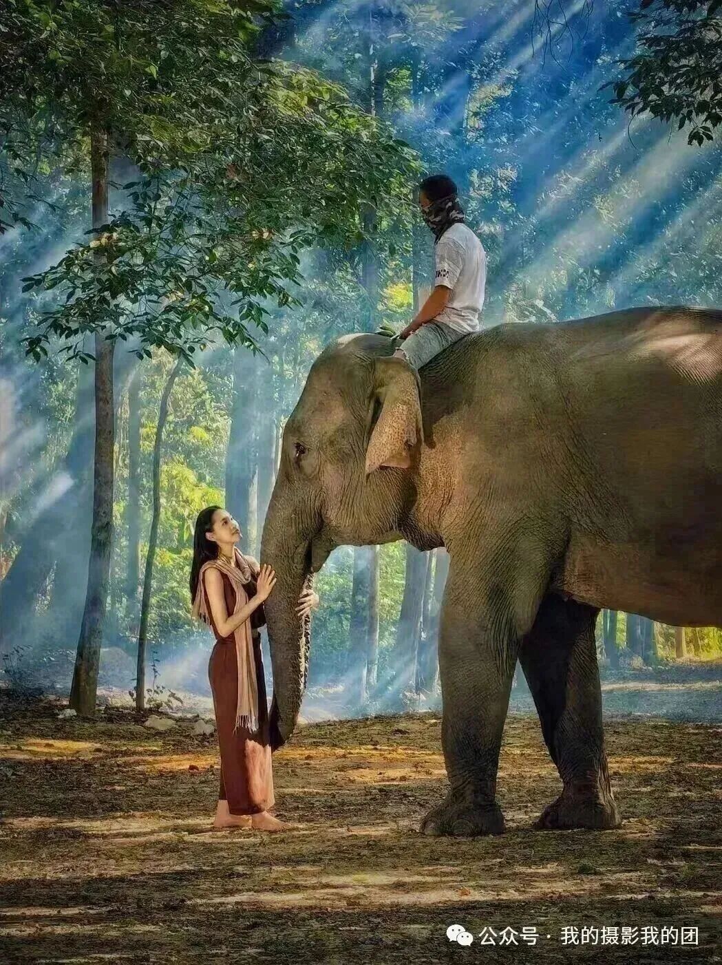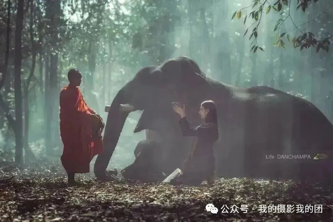 早上拍摄凯旋门晨光(高45米,宽24米,在总理府附近,与主席府遥遥相望。1960年开始修建,1969年基本完工,是一座大型的纪念碑。原为纪念战争中的牺牲人员。1975年解放时,万象市群众庆祝胜利的游行从这里通过,为纪念这一历史性事件而将其称为凯旋门。凯旋门周围由中国政府援建,已建成音乐喷泉公园。),运气好还可以拍到僧侣从凯旋门路过的布施场景,这是不可多得的人文题材。早餐后出发大象谷拍摄全程最震撼的主题《人与大象》。到达后首先拍摄一组深林僧侣禅意(安排僧侣配合,摄影辅助团队2-3人),后拍摄水中大象禅意,有僧侣、美女、大象融合老挝传统文化拍摄(安排模特、驯象师、大象、摄影辅助团队2-3人)。下午安排丛林大象(耶稣光下最震撼)和天空之镜(落日光影)主题人像拍摄。大象在老挝人心里,是一个意义非凡的存在!曾经的澜沧王国,即是以大象来命名,意为“百万大象”之国。人们和大象共同演绎澜沧王国的古典时代,成为了老挝式美学呈现的最重要主题,没有之一。无论是僧侣与大象,还是老挝传统美女与大象,均能完美展现出老挝人与大象之间最重要亲密的关系 住:万象