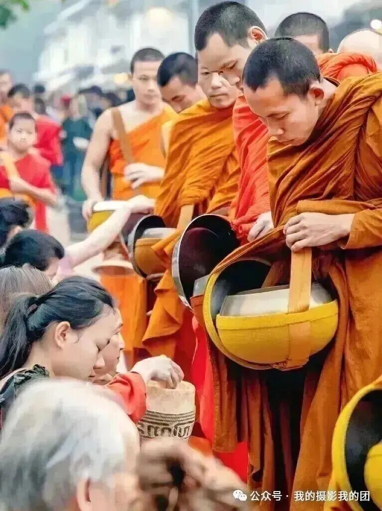 早上五点半出发拍摄千年布施全过程(僧侣晨钟-化缘-回寺)。后参加泼水节活动拍摄。沿路都是老挝当地信徒们一早就会带着糯米饭、水果等食物或坐或跪在街头,举着饭锅或是竹篮,静静等待身穿橙色袈裟的僧人们的到来,为经过的僧人施糯米饭。僧侣布施也是浩浩荡荡队伍人群,这里是世界上规模最壮观的布施场景,千百年来,这个神圣的仪式亘古不变、盛况空前。后泼水节也称宋干节(老挝佛历新年),“宋干”一词源于梵文,意为旱季结束,雨季即将来,意指“跨越”或“向前迈进”。泼水节最早起源于公元5世纪的波斯,泼水节是一个多民族、多国家的节日,中国的傣族,缅甸、泰国、柬埔寨等地都有自己的泼水节。此举由来是因“水”在佛教传统仪式中代表净化和祝福,借泼水象征清除厄运和罪恶,开始纯净的一年。也是老挝传统新年一年中最重大、隆重的节日,节日期间互相泼水祝福、寺庙祈福、清水洗濯佛像等传统方式庆祝节日,尤其是大街小巷中,当地人的门前准备着装满水的大桶,等待路过的人,然后把行人泼湿,以此来祝福祈祷来年风调雨顺、五谷丰登、事业顺利!同时来自世界各地的旅摄者在同一天里,共同享受湿身的快感,在泼水节中谁被泼的水越多,象征着该年谁最幸福。我们选择四月去老挝参加泼水节,因为还有众多新年习俗值得前往拍摄,相信在这座神秘、宁静的东南亚佛都,将迎来异于往常的喧闹与繁华。住:琅勃拉邦