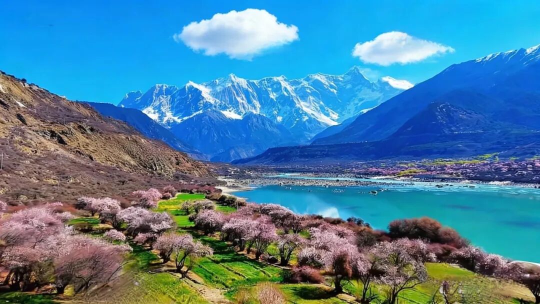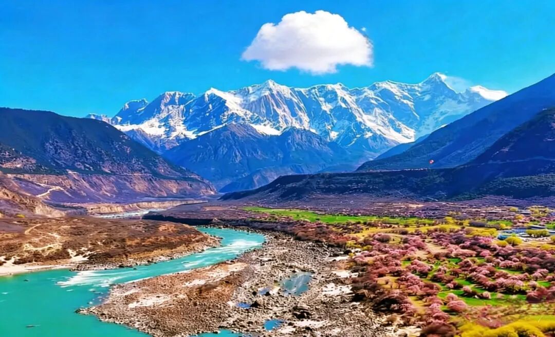 早餐后前往被誉为“林芝桃花第一村”的嘎拉桃花村拍摄(含门票),这里是整个林芝地区的最佳赏花地,一排排盛开的桃花在绿色麦田梯田的衬托下,整个山坡如同藏族妇女的围裙耀眼夺目,素有“西藏江南”之美誉。阳春三月嘎拉桃花沟里已是粉色弥漫,上有蓝天白云、中有雪山、下有青稞、油菜花等,登上观景楼,看那粉紫色连成一片,混合着翠绿嫩黄在山坡上、河流旁、田地间蔓延,树枝随意向上生长,枝头桃花怒放,密密匝匝的,绚丽、璀璨,远处纯美的蓝天白云和圣洁的冰川雪山遥相辉映,美景如画。后乘车前往素有“背包客圣地”之称的边境小镇派镇,再进入雅鲁藏布江大峡谷景区(含门票+景交车),换乘小交通前往离南迦巴瓦最近的村寨索松村,这里可拍摄两江汇流风光、两岸桃花春色、大拐弯、中国最美的雪山南迦巴瓦峰、尼洋河风光带、雪山藏族村寨等高原极致美景,有“藏地秘境”之称。日落时分到观景平台,拍摄雅鲁藏布江大峡谷下桃花风光及南迦巴瓦日照金山。观景台正对南迦巴瓦峰,是拍摄雪山的绝佳位置。住:索松村