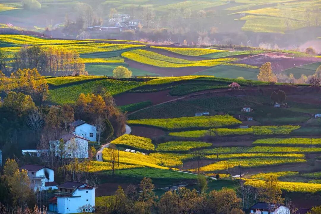 早餐后,我们沿着西汉高速一路穿越秦岭,一路美景相伴,感受秦岭“亚洲第一隧”的迷人风光,“满目金黄香百里,一方春色醉千山”每年春天三四月份的陕南汉中盆地和浅山丘陵的百万亩油菜花同时怒放,盛开的油菜花与镶嵌其间的麦苗及青山绿水相互掩映,随处可见大片大片的油菜花田,万亩油菜已成为一片金黄色的海洋,构成汉中盆地一道亮丽的风景线。下午前往我们将分别前往毛堰村最佳油菜花拍摄点、金家桥最佳拍摄点、沙凹岭最佳拍摄点等区域沿途择机拍摄,从山顶铺散到山谷下,站在山顶望去,万亩花海将汉中盆地分割成一个个块状版图,脚下大片的山谷内,金灿灿的油菜花层层叠叠,中间围拢着几个小小的村落,黑瓦白墙的民居、山川、村舍、河流皆融入油菜花海之中,形成独具一格的乡村田园画卷,美不胜收,吸引了四面八方的摄影爱好者及游客前来踏春赏花。住:汉中