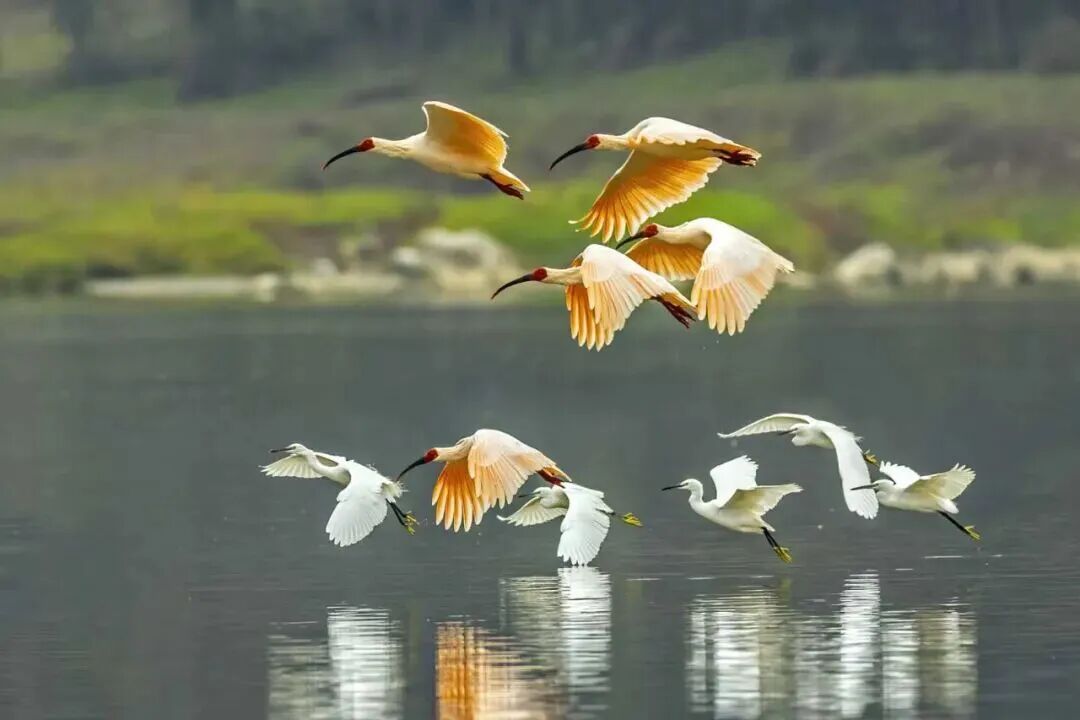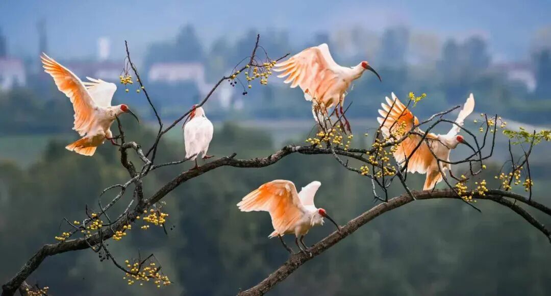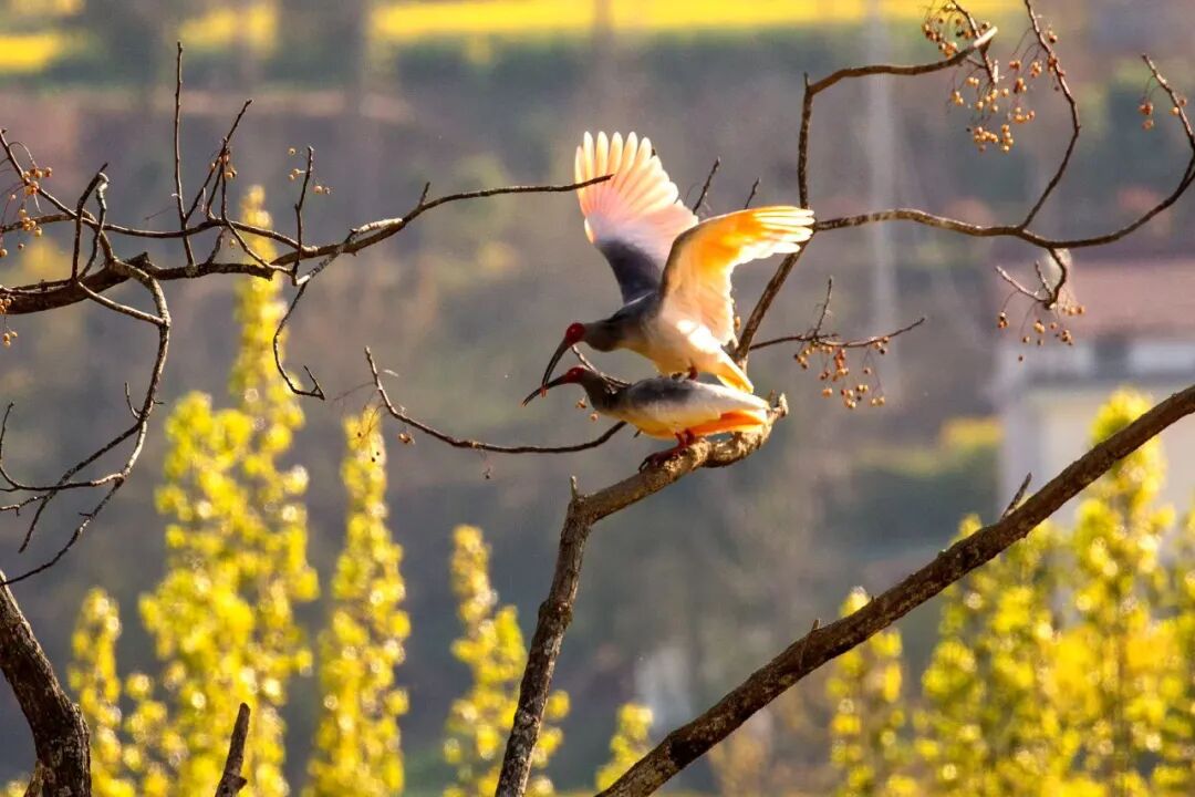 早起拍摄水上花海晨曦田园风光,这里丘陵连绵,水域通幽,山水翠绿,花香四溢,日出时两边连绵起伏的油菜花海倒映在平静的湖面,简直就是一副巨大的山水盆景。放眼望去,水天一色,黄绿交错,成片油菜花和高耸的松林倒映在明亮如镜的湖面上,风光旖旎,美如仙境,宛如世外桃源。后前往田间地头、花海丛林、山谷河流去捕捉"东方宝石"之称的朱鹮独特的瞬间魅影。3月的乡村田野,房前屋后,处处开满油菜花,花香四溢,油菜花田里的朱鹮,成群结舞,时而飞舞翱翔、时而嬉戏打闹,觅食、归巢的壮观景象,都是拍摄的最佳好时刻!当野生的朱鹮飞过田野时,你也可以用慢门的形式拍摄出不一样的动态朱鹮!傍晚时拍摄洋县油菜花与满山遍野的梨花落日风光。无论是纤陌小径,田间园廊,还是山坡、湖水,映入眼帘的都是洁白如霜、竟向开放的梨花。而山下,金黄的油菜花与村庄的粉墙黛瓦,周围逶迤起伏、参差错落的美丽山景融为一体,构成了一幅春色盎然的动人图画。住:洋县