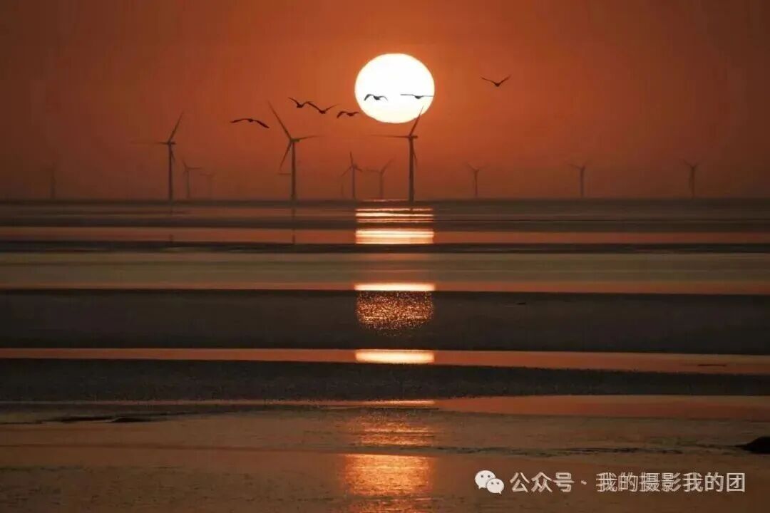 早起前往条子泥观潮开阔地带拍摄滩涂日出、潮汐光影、赶海的渔民,每当海潮涨落间,无数由潮汐往复冲刷而成的水道,一如滩涂的动脉盘桓曲折,从大海中现身,像数不清的参天巨树在广袤的滩面上生长,形成一片气势磅礴的“潮汐森林”。晨起时分当红日跃出地平线时,暖橙霞光洒向滩涂,将潮沟染成银带,借积水形成的倒影勾勒对称景致,不尽赞叹大自然的鬼斧神工,造就了条子泥湿地滩涂上独特的“潮汐树”景观,见证着潮汐与时间的流逝,诉说着湿地与生命的和谐。下午继续拍摄条子泥湿地滩涂、麋鹿群、候鸟(黑嘴鸥、蛎鹬、勺嘴鹬等),初春时节,在美丽海湾条子泥,候鸟 " 春迁 " 正在上演,随着气温逐步回升,越来越多的鸟儿有向北方迁徙,也有其他候鸟(黑嘴鸥、蛎鹬)将来到条子泥湿地,展示飞鸟之趣、生态和谐之美。尤其是3月至5月,会陆续在条子泥湿地停歇,这仿佛是一场大自然的“春运”。尽管与人类一年一度的迁徙有所不同,但鸟类的这场迁徙同样充满了生机与活力。每当日落时分潮汐渐退后,还可捕灵动姿态水鸟戏水或麋鹿群等精彩画面,夕阳缓缓西沉,缕缕霞光照耀在波光粼粼的水面上,霞染碧水金碧辉煌,宛若一幅浓墨重彩的油画。住:条子泥