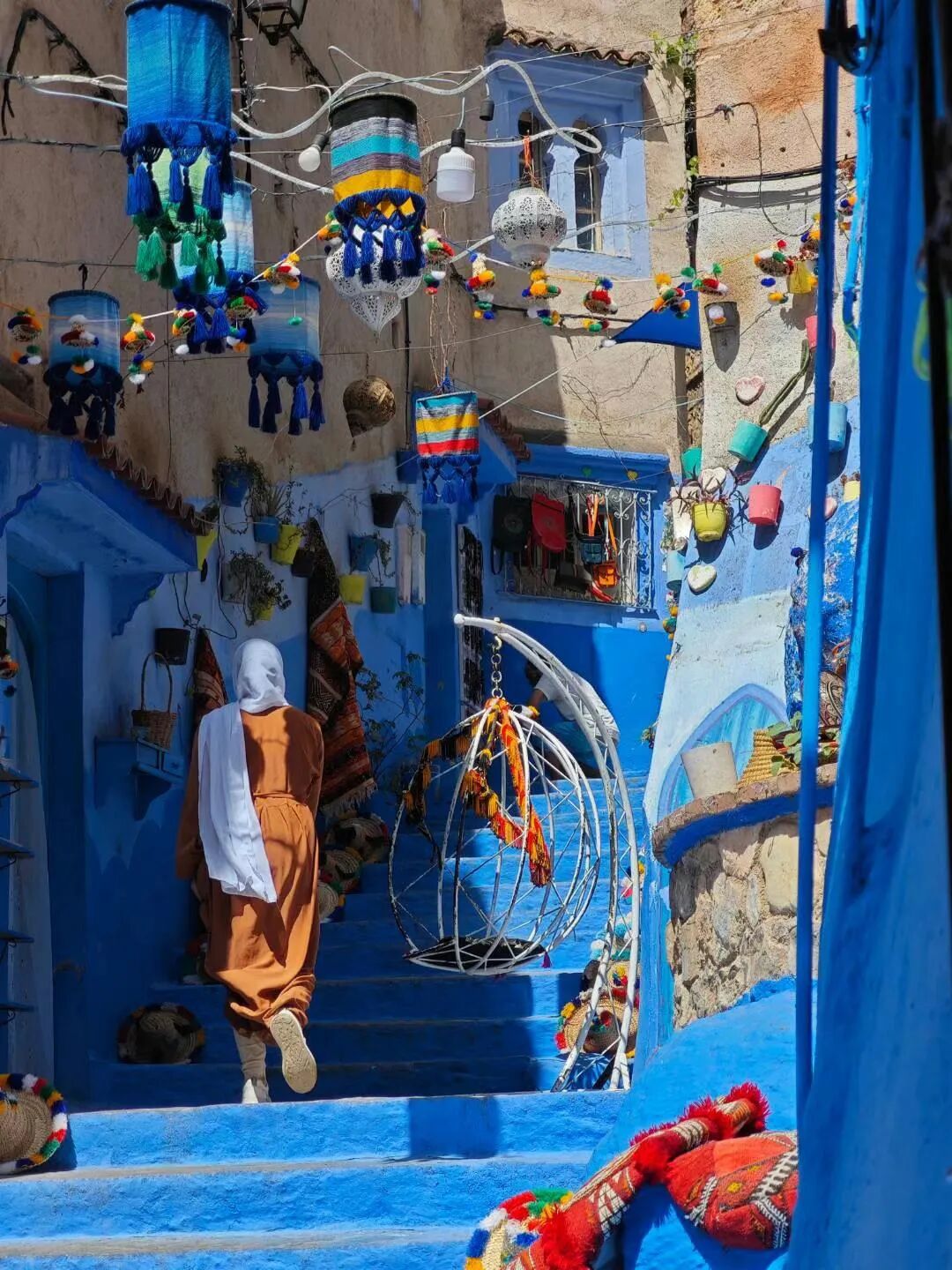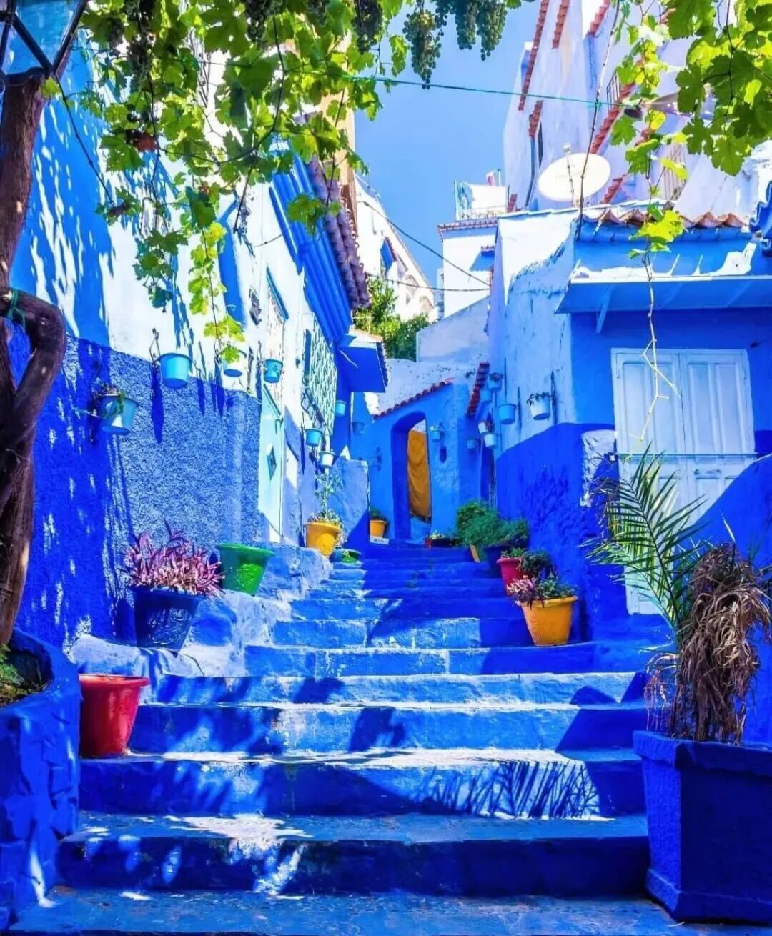 早餐之后前往丹吉尔,参观打卡非洲洞和外观灯塔,瞭望直布罗陀海峡,是非洲距离欧洲最近之处。后前往【舍夫沙万】拍摄老城集市人文、蓝色小城风光。作为摩洛哥的风景胜地,纯净清爽的空气和似乎永远为蓝色的天空,与错落有致的阿拉伯城市交相辉映,勾勒出一幅天然的蓝色画卷。大家可沿着著名的Plaza Uta el-Hammam广场,踏在并不规则的鹅卵石路面上,顿时你会觉得恍如隔世。傍晚需步行 1.5 公里左右,前往小城倚靠的山腰制高点,这里有个白色清真寺,可拍摄夕阳西下小城全景、日落光影和夜景,这里是唯一的最佳机位。住:舍夫沙万3-4星级酒店或当地特色民宿酒店