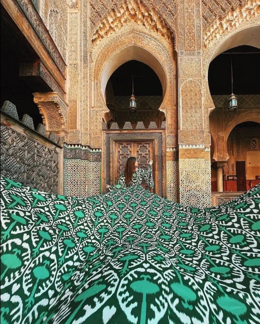 早餐后前往被美国著名杂志(Traveler)评为全球最浪漫的10大城市之一【菲斯古城】拍摄菲斯古城、人文、当地染坊、手工作坊、迷宫一样的老街。到了菲斯,人们仿佛回到了一千年前,毛驴仍是百姓主要交通工具,探访那里的中古世纪老城区、古兰经经学院、Nejjarine 泉、伊德里斯陵墓和世界第一所大学等。菲斯古城里最具“色彩”的景点就是皮革染坊。染坊名气大的其中一个原因就是一个“臭”字,在迂回曲折的小巷迷宫中,循着臭味去找,你就能找着这个大染坊。据说菲斯是世界上极少仍保持传统染色方法的地区之一,当地人用驴子送来皮革,再将它们放入一格格染槽中,保留着传统搓揉及风干的古老方法,让天然植物的颜色在皮革上美丽地呈现出来(老城安排模特摆拍)。下午前往伊夫涵小镇拍摄庭院、村庄等,被称为摩洛哥的“小瑞士”,伊夫兰国家公园以其众多的动物物种而闻名,构成了其独特的生物多样性。住:伊芙兰4星级酒店