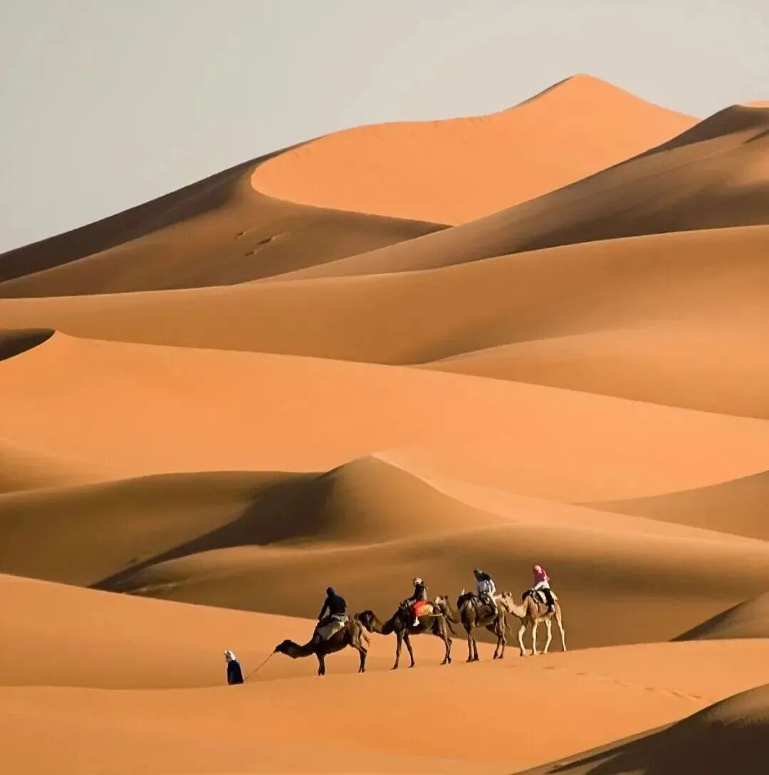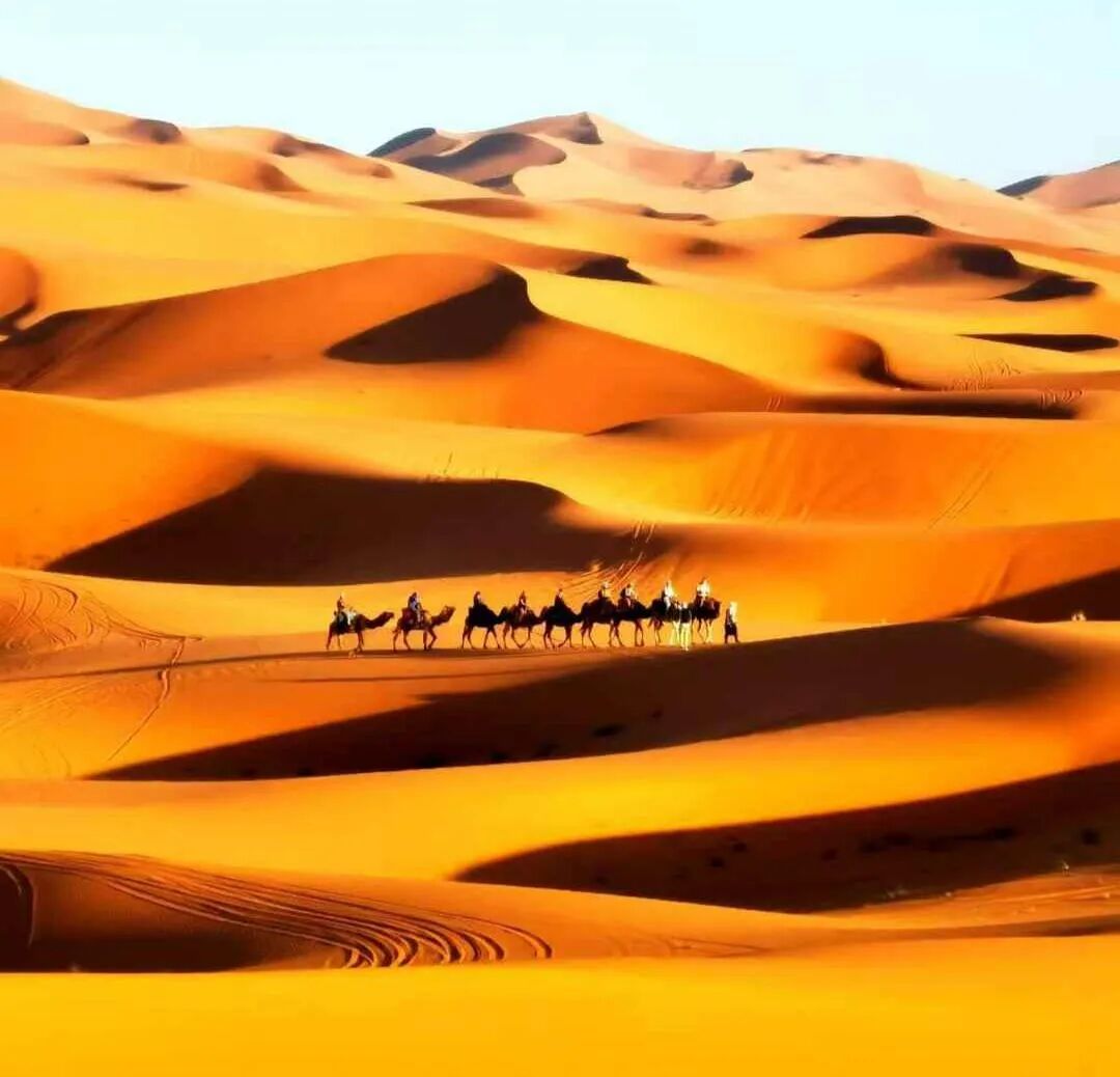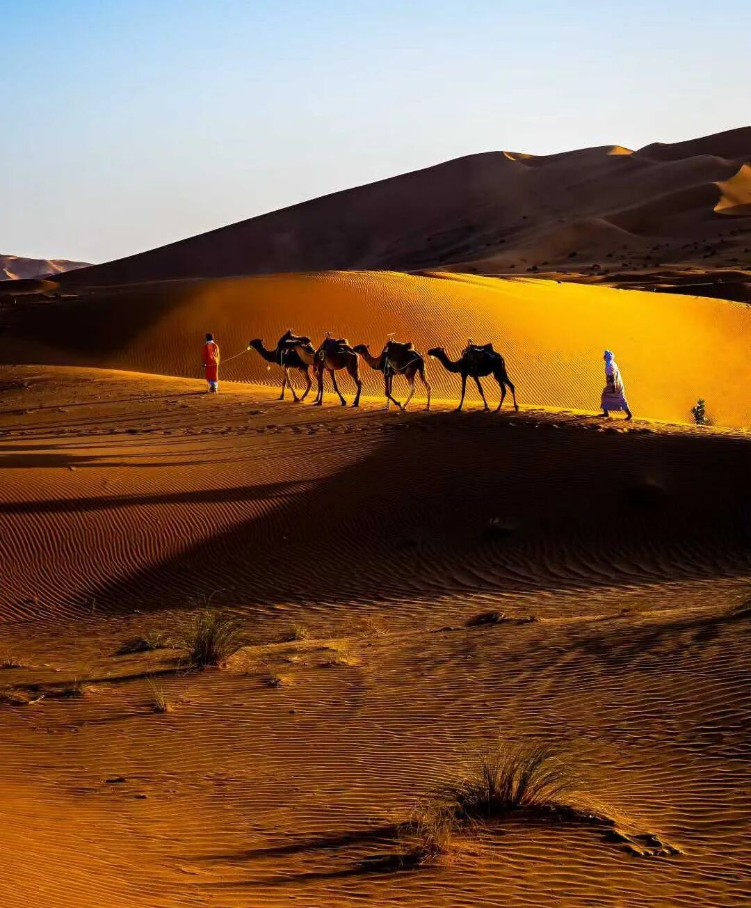 早上出发,当天路程较长,前往非洲大陆北部,世界上最大的沙漠【撒哈拉沙漠】。沿途择机拍摄峡谷风光峡谷及周边有一些柏柏尔人村落人文,峡谷的山壁主要是由石灰岩等岩石构成,这些岩石在长期的风化和水流侵蚀作用下,形成了各种奇特的形状和纹理,有一些地方的岩石看上去像是层层叠叠的书页,记录着地质变迁的历史。后根据抵达时间或先入住沙漠酒店。之后前往沙漠拍摄大漠光影及驼影(安排驼队+当地柏柏尔人文模特),尤其是夕阳西下,从地平线开始,色彩逐渐演变过渡到金黄色,这些色彩在沙漠的广阔背景下,显得尤为鲜明和生动。晚上如果天气好,感兴趣的老师可结伴前往沙漠拍摄星空。【梅祖卡】是撒哈拉之门,这里的沙漠独一无二,以形态各异的沙丘闻名,更因为它会随着自然光线的变化展现出金色、粉色等不同的美丽色泽,成为摩洛哥境内独特的大漠风光,更成为无数人梦中的撒哈拉。住:梅组卡4星级酒店
