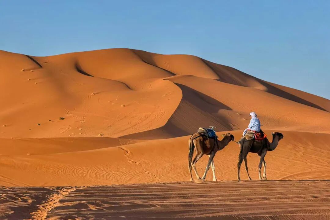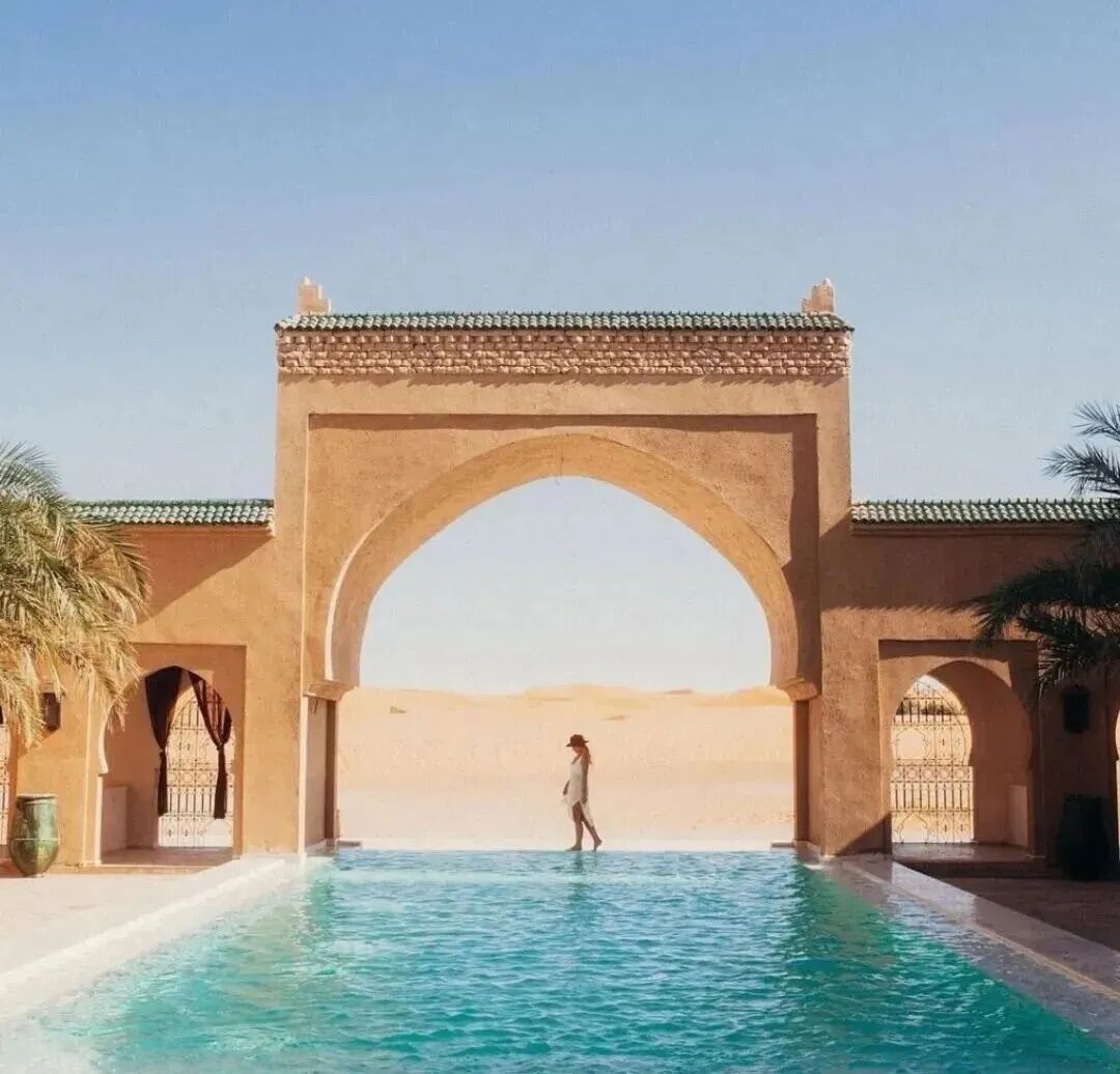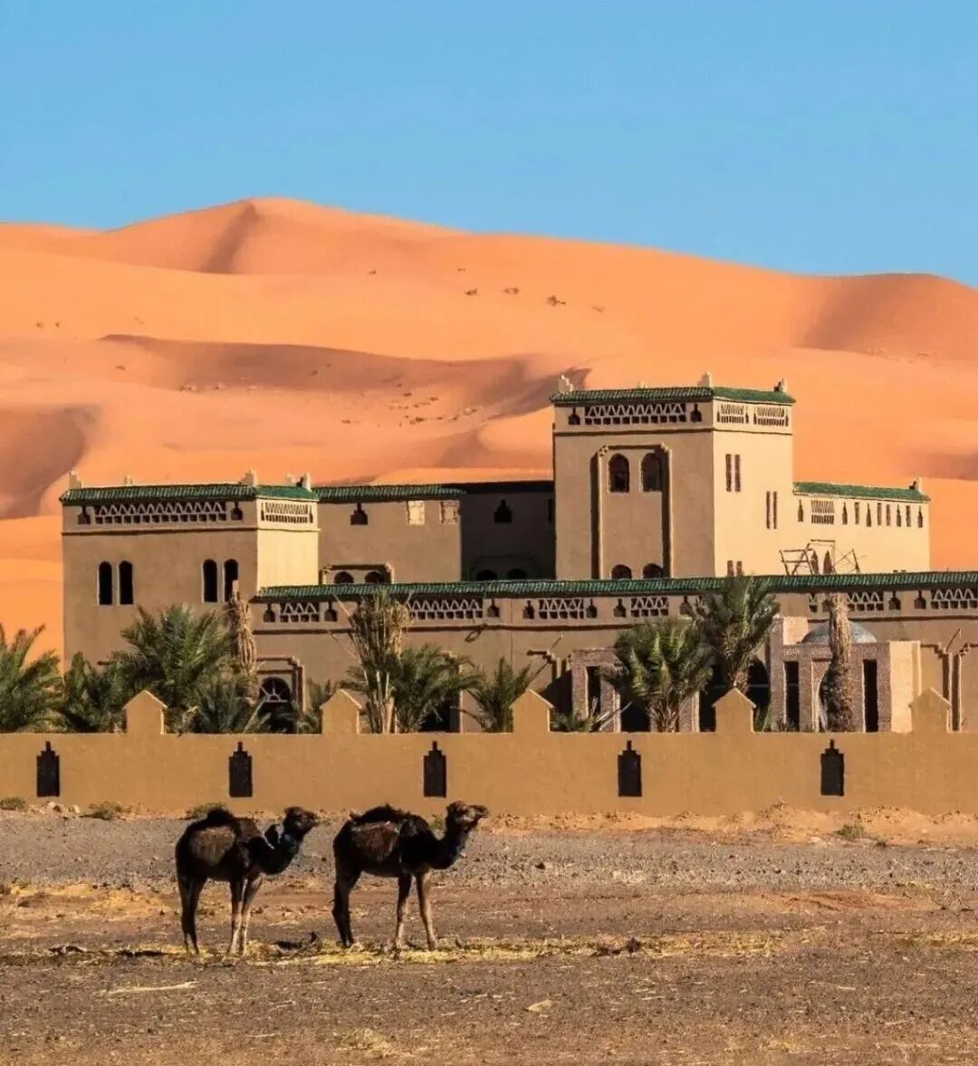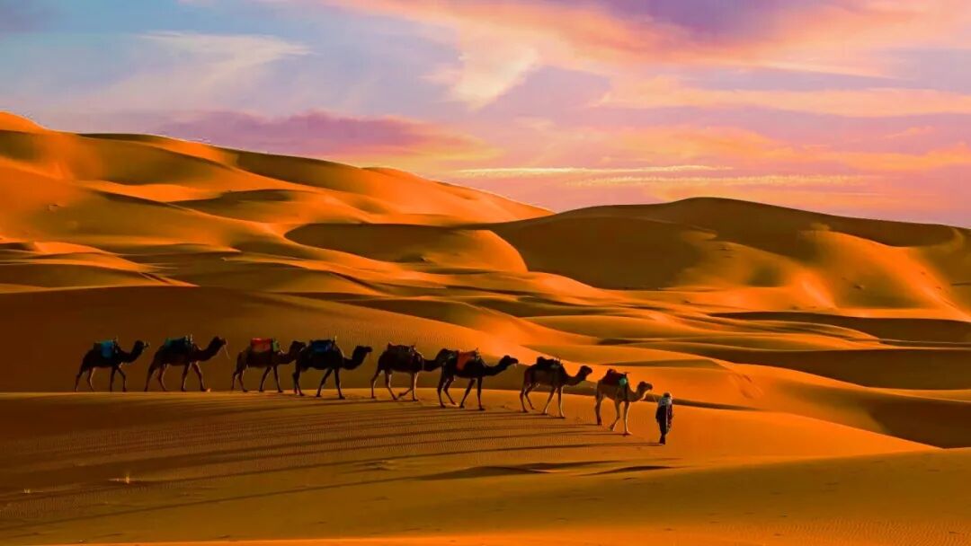 早上出发,当天路程较长,前往非洲大陆北部,世界上最大的沙漠【撒哈拉沙漠】。沿途择机拍摄峡谷风光峡谷及周边有一些柏柏尔人村落人文,峡谷的山壁主要是由石灰岩等岩石构成,这些岩石在长期的风化和水流侵蚀作用下,形成了各种奇特的形状和纹理,有一些地方的岩石看上去像是层层叠叠的书页,记录着地质变迁的历史。后根据抵达时间或先入住沙漠酒店。之后前往沙漠拍摄大漠光影及驼影(安排驼队+当地柏柏尔人文模特),尤其是夕阳西下,从地平线开始,色彩逐渐演变过渡到金黄色,这些色彩在沙漠的广阔背景下,显得尤为鲜明和生动。晚上如果天气好,感兴趣的老师可结伴前往沙漠拍摄星空。【梅祖卡】是撒哈拉之门,这里的沙漠独一无二,以形态各异的沙丘闻名,更因为它会随着自然光线的变化展现出金色、粉色等不同的美丽色泽,成为摩洛哥境内独特的大漠风光,更成为无数人梦中的撒哈拉。住:梅组卡4星级酒店