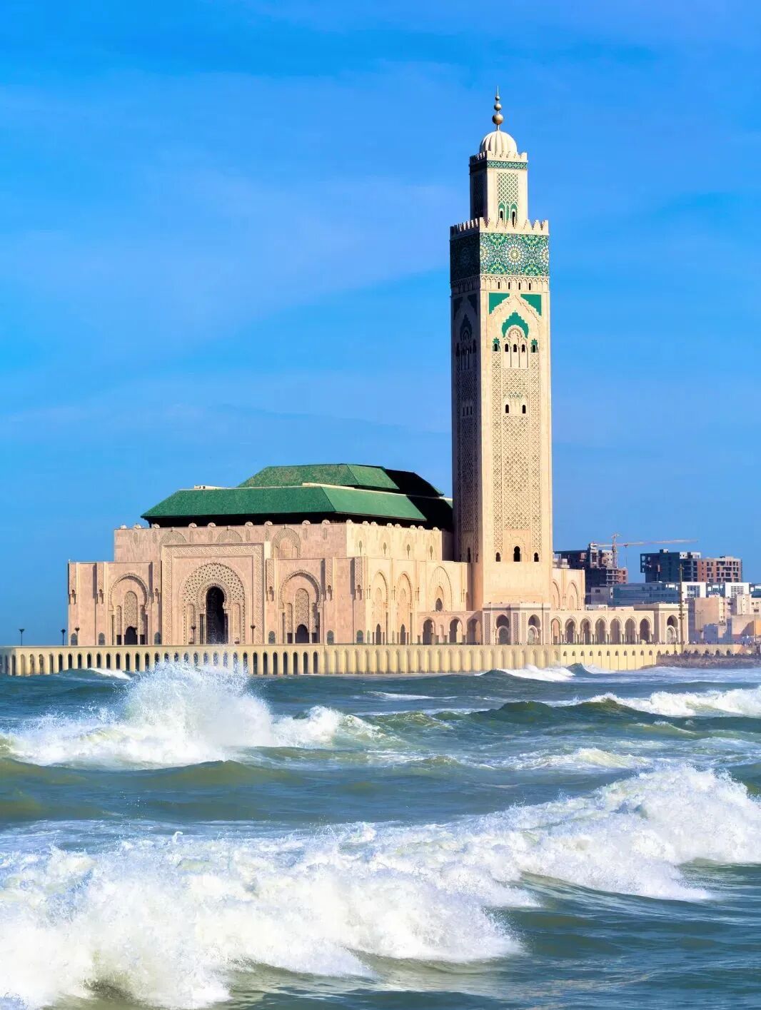 抵达机场后,先接机前往摩洛哥最大的城市卡萨布兰卡酒店入住,后前往“伊斯兰世界第三大清真寺”哈桑二世清真寺拍摄清真寺建筑人文等,其建筑面积2公顷,长200米,宽100米,屋顶可启闭,25扇自动门全部由钛合金铸成,可抗海水腐蚀,寺内大理石地面常年供暖,是世界上现代化程度最高的清真寺(温馨提醒:入内拍摄不可携带三角架)。下午前往卡萨布兰卡最美的地方【迈阿密海滨大道】拍摄海滨风光(适合慢门拍摄),这是濒临大海的一条观景道,迎着海风,瞭望蓝色大西洋,傍晚海边拍摄灯塔以及海上日落光影。住:卡萨布兰卡4星级酒店