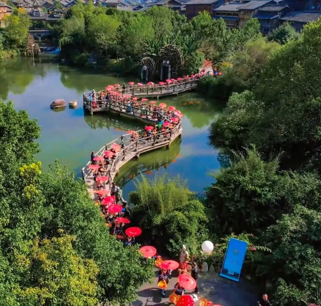早餐后乘车前往“2008奥运圣火传递地、原生态民族文化博物馆”郎德上寨(含门票+景交车),寨内苗民的服饰以长裙为特征,所以又称为“长裙苗”。可拍摄到苗族独有的木吊脚楼建筑群、古木参天、苗寨特色廊桥、苗寨人文等。还可以欣赏拍摄到寨民迎宾拦路酒仪式、盛装奔放热辣的长裙苗芦笙舞、锦鸡舞等人文民俗。中餐后前往“中国乃至全世界最大的苗族村寨、苗族历史文化的露天博物馆”西江千户苗寨(含门票+四程景交车),苗寨四面环山,依山磅水而建,小桥流水人家,层层叠叠的吊脚木楼从白水河两岸一直蔓延至山巅,气势恢宏。这些古老的建筑完全采用榫卯结构,不用一钉一铆,是苗族先民智慧的结晶。山脚下,清澈的白水河穿寨而过,数座风雨桥横跨其上,与周围的青山绿水、梯田云海完美融合,构成一幅壮丽而和谐的画卷。在此可拍摄苗家吊脚楼、苗族建筑群、廊桥风光、白水河风光、农居生活及粗犷激昂的苗族人文,体验不一样的苗族风情。傍晚登观景台拍日薄西山,红霞漫天的苗寨落日,晚上华灯初上,千户苗寨万家灯火繁星点点的璀璨夜景,更是像满天的星星撒落在山头!住:西江千户苗寨