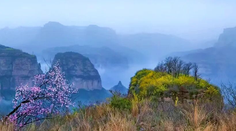 早起马鞍垴拍摄太行山日出晨曦、山顶红崖绝壁、太行民居、太行峡谷春色等风光,这里是太行之巅的摄影圣地。海拔1000米,集雄、峻、奇、险为一体,矗立崖端眺望,层峦叠嶂,怪石峥嵘,时常云雾缭绕,其风景独特,赤壁如刀劈一般。春日的南太行,上演着一场盛大的山野花事,凛冽岩壁被春风唤醒,万丈悬崖上萦绕着粉白云霞,在晨光中流淌生机,不必远行,便能闯入一幅行走的《千里江山· 春色图》!下午前往“高崖之巅的摄影天堂”拍摄贤麻沟春色风光,贤麻沟坐落于海拔1000米高崖之巅的幽静村落,随着春日的脚步悄然临近,满山遍野的梨花盛开如雪,洁白无瑕,远观似云絮轻飘,近看则如玉树临风。所见皆是春意怏然,山间黄、红、绿三色交织,仿佛为大地铺上了一层绚烂的锦绣。这里地势险要,群山环绕,森林茂密,古朴的民居与迷人的自然景观交相辉映,使得近年来成为拍摄高崖之巅自然风光的绝佳之地。后沿途拍摄深谷里的世外桃源宑底风光,其地形不太通风,山外不雾它也雾,山外晴空,沟里白云,烟雾汇集绝壁之间,远处墨绿色山峦使人神魂颠倒。后深入海拔1763米最高古村落拍摄保存完好错落有序由石板和石头垒砌而成的石板房民居,这是太行山名胜风光集汇地之一。因村内民宅建筑就地取材,有石街、石院、石窗、石柱、石头墙等与大自然浑然一体,因此又被称为“中国画家村”。住:太行大峡谷