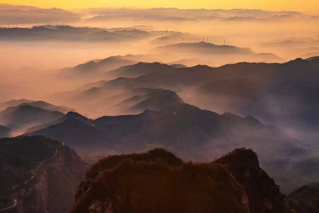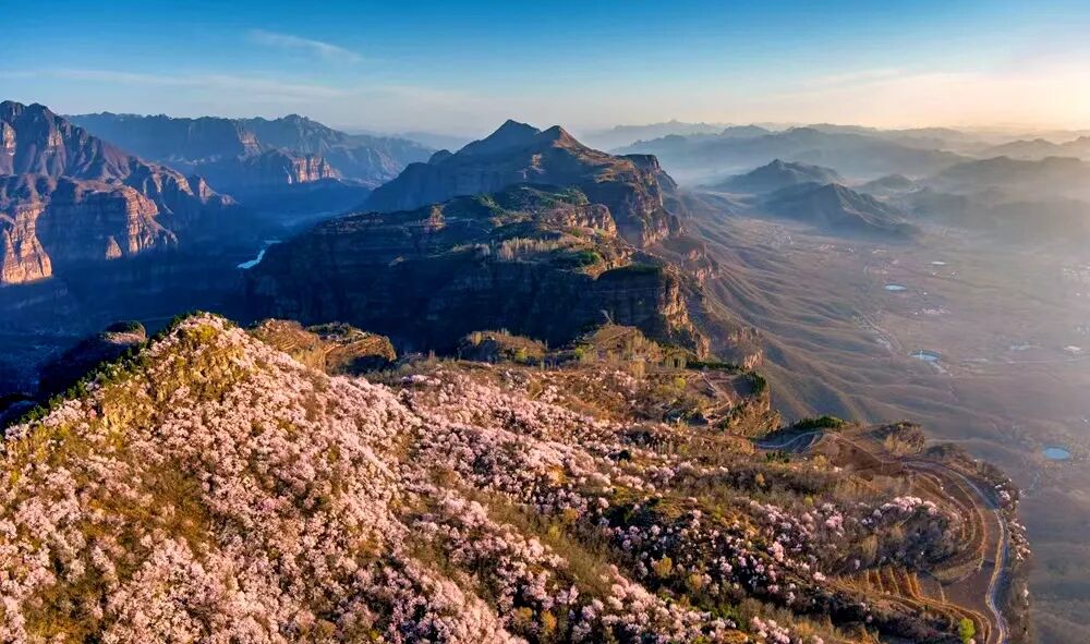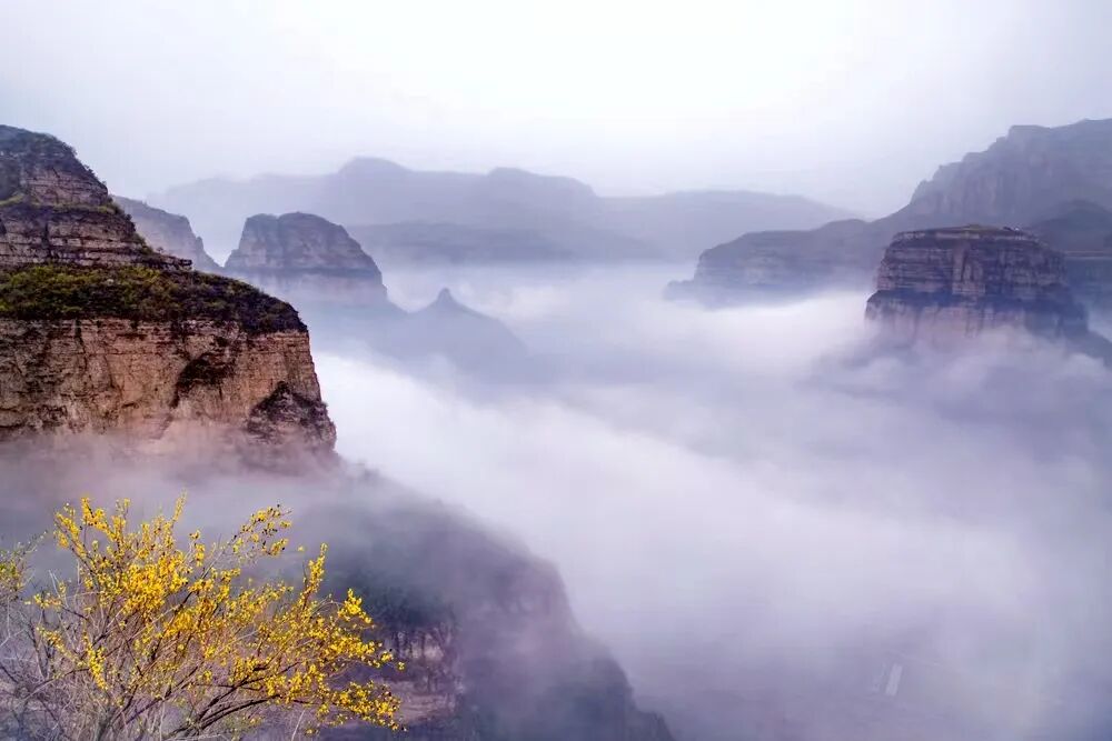 早餐后前往西井山沿线拍摄,一路美景不断,山脉连绵,峡谷幽深,村落隐隐,梯田层层。每到春天,漫山金灿灿的连翘花已盛开,中间夹杂着粉红的桃花,大山像披上了一袭锦缎金黄一片。置身其间,远离工业文明,去感受她的壮美、古朴,给你一个全新的精神憩息地。后前往虹霓瀑布拍摄,山上河水跌落百米山崖,一挂瀑布飞泄直下,仿佛飘逸的白绸飘扬。还有仰望瀑布和崖上人家,其气势雄奇,震撼惊人。虹霓村不仅仅有高山、溪流、飞瀑和幽峡,作为中国传统村落,村中还保有大量历史建筑和古老民居。村中溪流潺潺,崖边飞瀑宣泄。被誉为山水桃源,太行江南。下午拍摄中国最美公路虹梯关挂壁公路,穿行在这条蜿蜒曲折的挂壁公路上,一侧是似利剑般直指云霄的悬崖峭壁,一侧是望不见底的滚滚深渊,四周壁立千仞,沟壑纵横,令人生畏。后沿途拍摄绝壁太行、崖上人家、太行天路险要风光,特别每年的四月份开始,太行山的桃花、杏花、梨花争相开放,峡谷内漫山遍野黄色、红色、白色一片片,蔚为壮观,美哉!满眼望去,巍巍太行山脉八百里,无处不是大气磅礴的国画山水长卷,深邃的峡谷、直立的岩壁,带给强烈的视觉震慑。每一段都有不同的传说与风貌,四季更迭,每一次的到来都有不同的景致和意趣。住:太行大峡谷