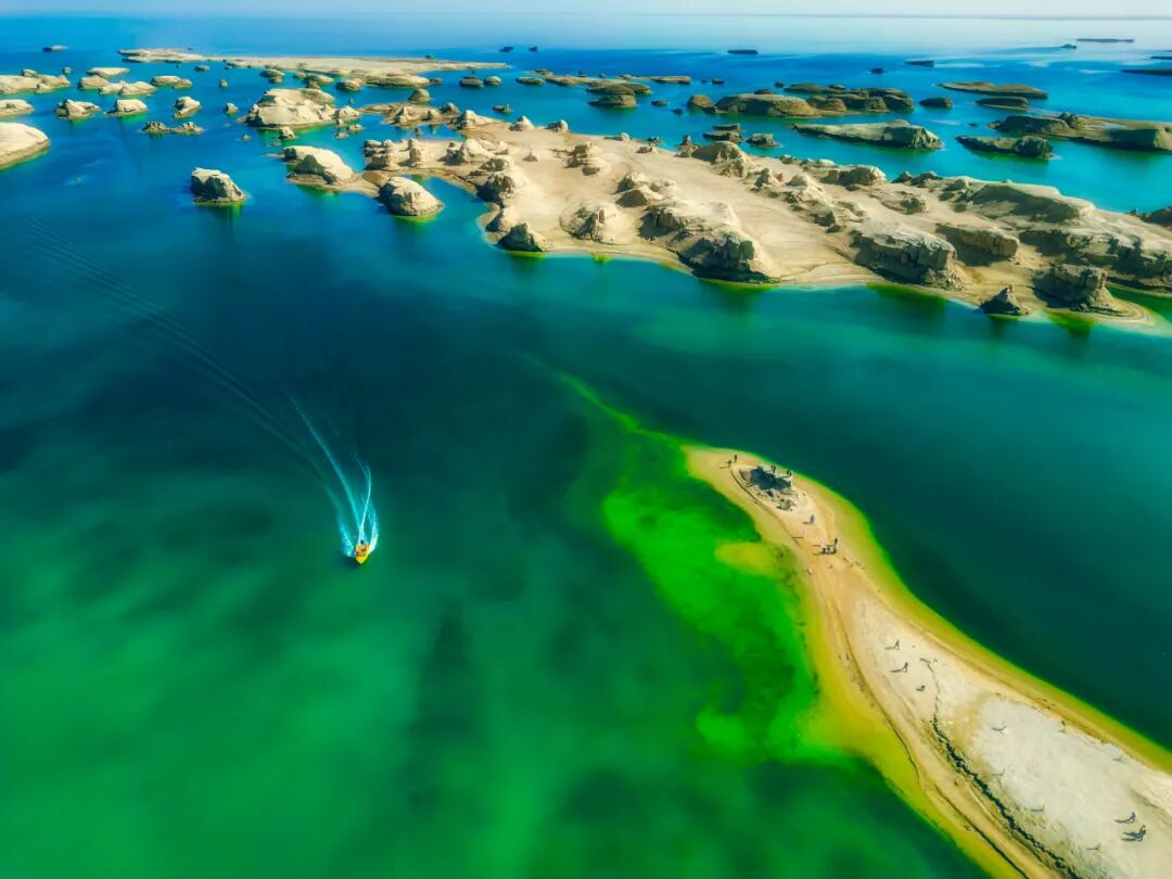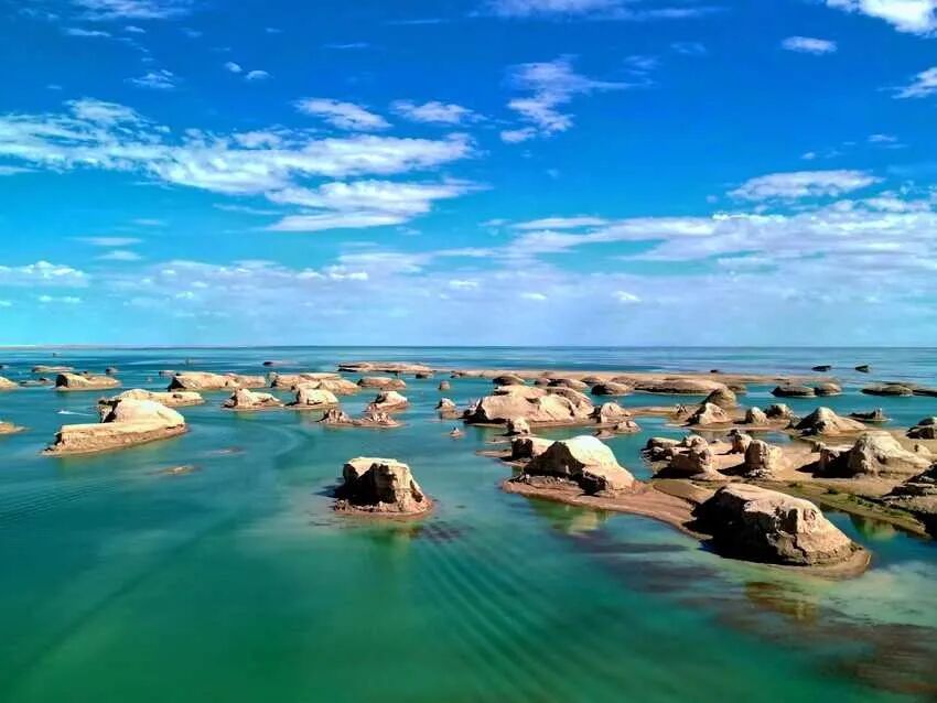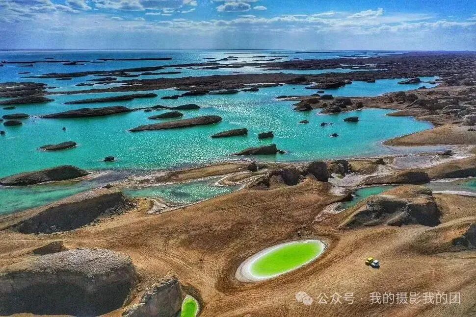 早起前往茫崖拍摄有“中国真正的天空之镜”的翡翠湖(含门票+观光车),这里的“翡翠湖”属硫酸镁亚型盐湖,由于盐床由淡青、翠绿以及深蓝的湖水辉映交替、晶莹剔透。与大柴旦翡翠湖的青、绿、蓝色相比较,茫崖翡翠湖的颜色单一,不论从地面平视还是从空中俯瞰,湖水都呈现出纯净的翠绿色,绿的耀眼。这里湖面开阔,一边倒映着雅丹地貌油沙山,一边倒映着昆仑雪山,山与湖水相交相应,在不同的时间和不同的角度下,呈现出绚丽多彩的景象。后途经一个神奇的网红景点双色湖拍摄,这是柴达木盆地上的一颗璀璨明珠,G315国道从中间穿湖而过,使湖水一分为二,一边淡水一边咸水,一边呈浅绿色,一边呈深蓝色。绿色的一边是由于湖水含铜离子较高而呈现出鲜绿色,蓝色的一边则是因含盐量非常高,与天空相互映衬,水天相连,便成了蓝色,颜色迥异分明,被誉为“最美水上公路”。下午抵达“世界上的一大奇观”水上雅丹地貌群拍摄(含门票+观光车),这是一个至今全球唯一被发现的水上雅丹地貌,因为吉乃尔湖面抬升,逐步淹役北缘的雅丹群,形成了独有的水上雅丹,就像一望无际的荒漠中凭空而出了一片“汪洋”。相比陆地上的雅丹,碧绿的鸭湖水让雅丹地貌的黄色土丘显得更为柔和,不像雅丹魔鬼城那么荒芜,一阵风吹过碧蓝的湖水,像是波涛咆哮。落日时分,金色的雅丹倒映在湖面,站在丹霞高处,各个角度景色不一,碧绿的湖水与雅丹地貌交相辉映,水天皆一色,如幽灵围绕着魔鬼一般,令人赞不绝口!这里是航拍者的天堂!晚上天气好可以星空创作。住:水上雅丹(酒店标间)
