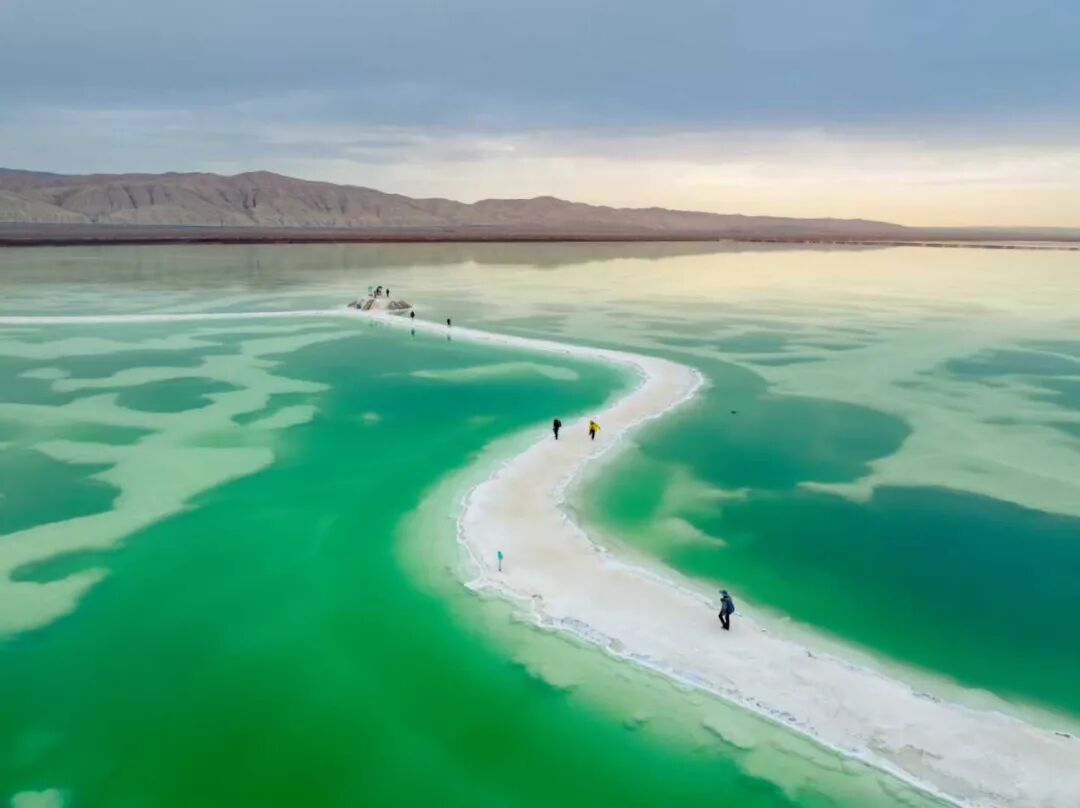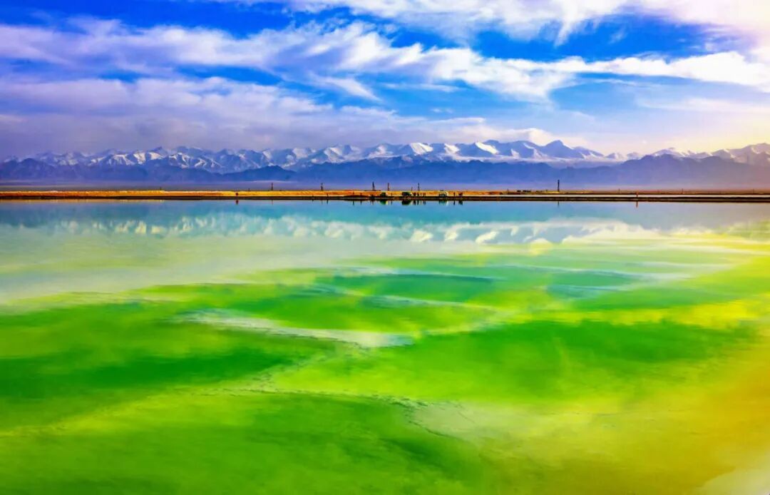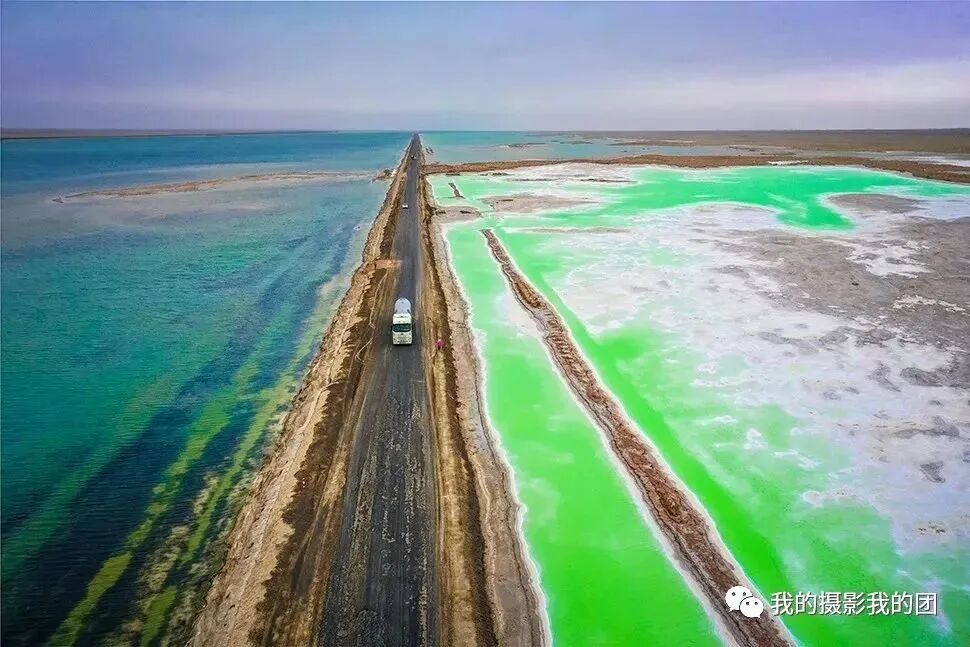 早起自由拍摄水上雅丹晨曦光影,晨起时朝霞下的水上雅丹微波粼粼,湖面映照着雅丹倒影,形象万千,丰富多彩。各种奇形怪状的断垣残壁、危楼斜宫,高高低低的黄色山丘,像骏马、像骆驼、像大象、像狮子远看像是群鲸跃出水面,近看又像残存的古城堡。后沿柴达木盆地国道G315行驶,车观最美网红U型公路,这里坡度较大,起伏大,公路笔直通天,可与美国“66号公路”相媲美,方圆百里,廖无人烟!沿途风光如像外来星球,奇异的沙丘造型,独特的地理地貌,瞬息万变的沙漠气候,这就是国道G315线依它独特、苍凉的美丽、低调的存在的魅力。后前往被誉为大地“调色板的翡翠湖拍摄(含门票+观光车),约6平方公里的“翡翠湖”是原大柴旦化工厂盐湖采矿队采矿区,为盐湖,湖中盛产硼、锂、盐、钾肥、芒硝等,这片大小不等形态迥异、深浅不一的盐池中的高浓度盐水在当地称之为“卤水”,是历经多年的盐湖开采而形成的采坑。由于所含矿物质浓度不同,湖水呈现出深绿、墨绿、翠绿…宛若镶嵌在大地上的一块块翡翠,就有了“翡翠湖”的美称。湖内层呈碧蓝色,外层呈奶蓝色,右边呈现出橄榄绿色,色彩斑斓。翡翠湖水面清澈通透,能清晰的看到湖底的盐层,在阳光的照耀下,湖面闪耀着五彩的光芒。晴空万里风平浪静之时,还可以看到远处的雪山倒映在湖面,湖面盐花似冰雪,宛如人间仙境,似宝石散落人间(有航拍最佳)。住:大柴旦