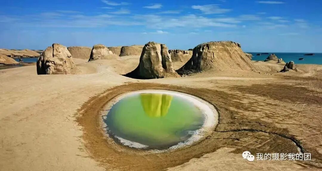 早餐后出发,途中择机拍摄沿途风光(有草地、雪山、沼泽等自然风光),一条通天之路嵌在茫茫戈壁间,无数秘境隐藏其中。从格尔木到茫崖的路程也如同目的地的名字一样辽远,仿佛真的去到了“茫茫天涯”。下午抵达茫崖前往被称为“恶魔之眼”艾肯泉(含门票+观光车),地处阿拉尔草原深处戈壁滩上的一处地热喷泉,形状似椭圆型,周围寸草不生且形成了一个红褐色的圆形,正中央便是流淌在地面如同沸腾的开水,咕咕上涌,奔流不息,便形成了一个巨大的“眼睛”,又像是腾飞的火凤凰。从上空俯瞰,泉眼与喷涌出的泉水以及周围土地上深红色环带状的沉淀物,组成了一个奇特的瞳孔造型,仿佛一只镶嵌在大地上的眼睛,因此被人们称为“大地之眼”。当泉水涌出泉眼周围硫磺矿物质长期沉淀,红褐色、金黄色、铁锈色…色彩斑斓。因艾肯泉流出的泉水含有大量的硫酸,不停的腐蚀着周边的地表,浓稠的酸性土质由黄及红,铺满周边,所到之处寸草不生,连鸟兽都望而生畏,千百年来不敢靠近,因而又被人称为“恶魔之眼(有航拍最佳)。住:茫崖