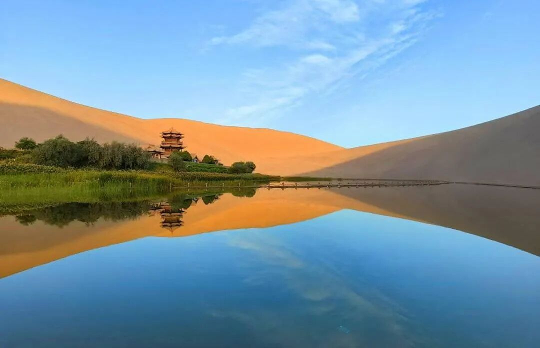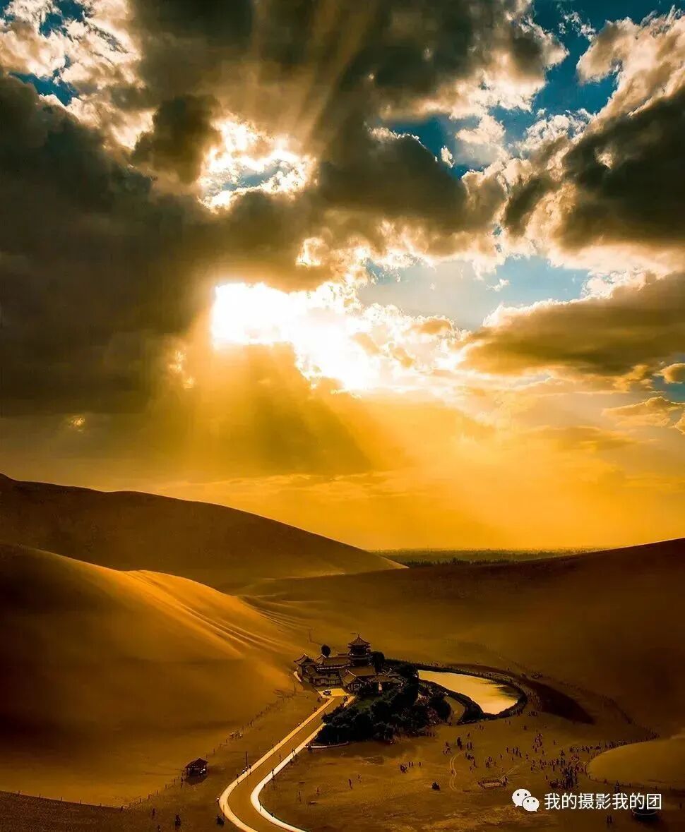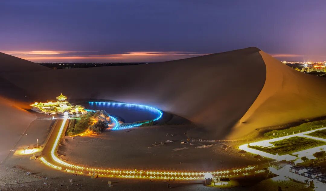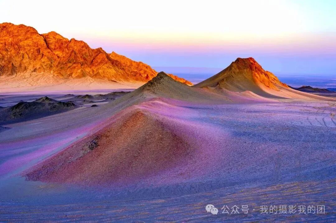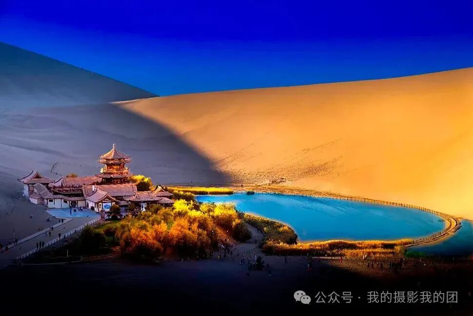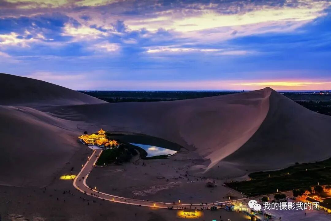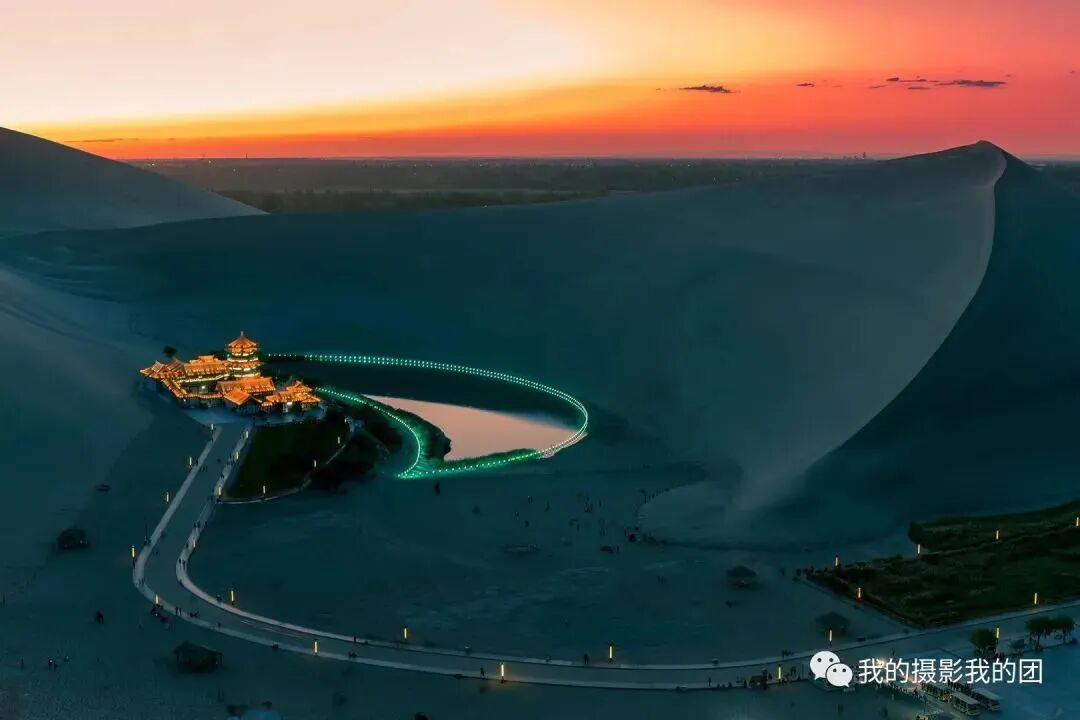 早起包小车前往胭脂山&黑独山拍摄(含包车费),黑独山是一处“地球上最像月球的地方”,这里仿佛是一个与世隔绝的月球表面,是一座黑色的石头山,由于长年的风沙吹过,被沙子盖住的地方就成了灰白色,盖不住的地方是黑色,就这样行成了一片“水墨丹青”。都说大自然神奇之处就是“百步之内必有解药”,就在被一片死寂笼罩的黑独山不远处,又有谁会想到会有一座绚丽又烂漫的山---胭脂山。胭脂山也叫彩虹山。胭脂山恰如七色彩虹的身姿主要由不同颜色的沙料石子经风沙的长期打磨,它以其独特的地貌和壮观的景色而闻名,是一个适合探险和摄影的地方,被称为“水墨画中画”。走进它,你会有一种一眼望穿千年之感。后抵达往塞外风光之一绝的鸣沙山·月牙泉拍摄(含门票),在这片古老的沙漠中,远处的落日和眼底的月牙泉,构成了一幅绝美的画面。日落之前登上制高点,拍摄沙漠落日光影,夕阳时西边的天空被余晖晚霞染红,前景是月牙泉,远处一轮红日徐徐落下,绝对是出片的大好时机。日落后不久天空渐暗,月牙泉将亮起灯光,天边繁星点点,此时美丽的月牙泉被宝蓝色的灯光点缀着呈现出美轮美奂的闹珊夜色,我们将继续拍摄璀璨夜景(因为晚上夜景拍摄时间不好控制,所以今天晚餐自理或自带晚餐)。后乘车到沙洲夜市,感受夜幕降临之下沙洲的美景,晚可自由打卡“沙洲夜市”夜景。住:敦煌