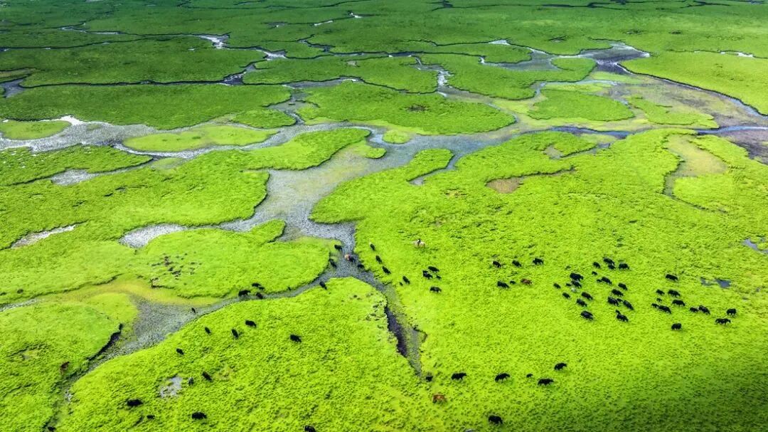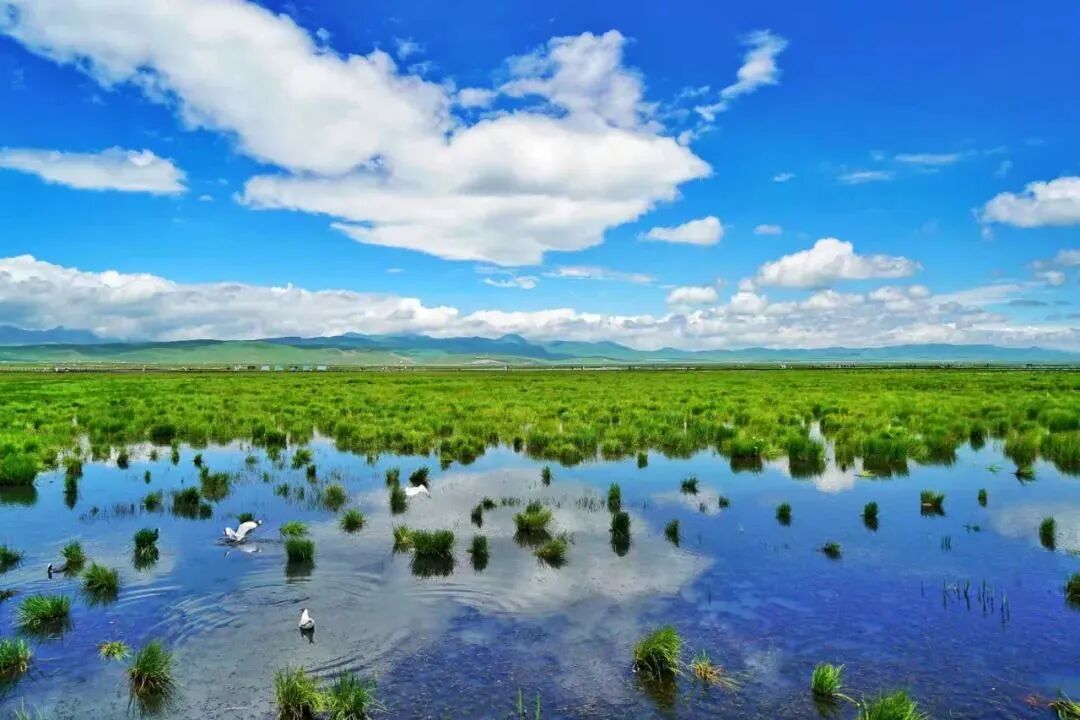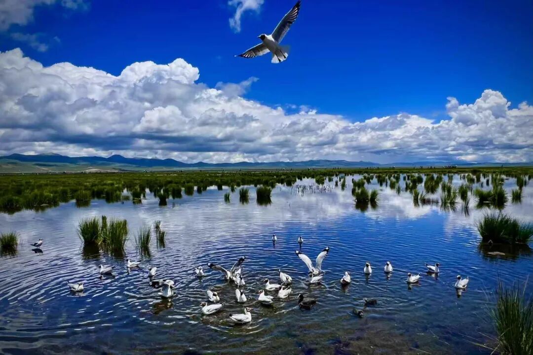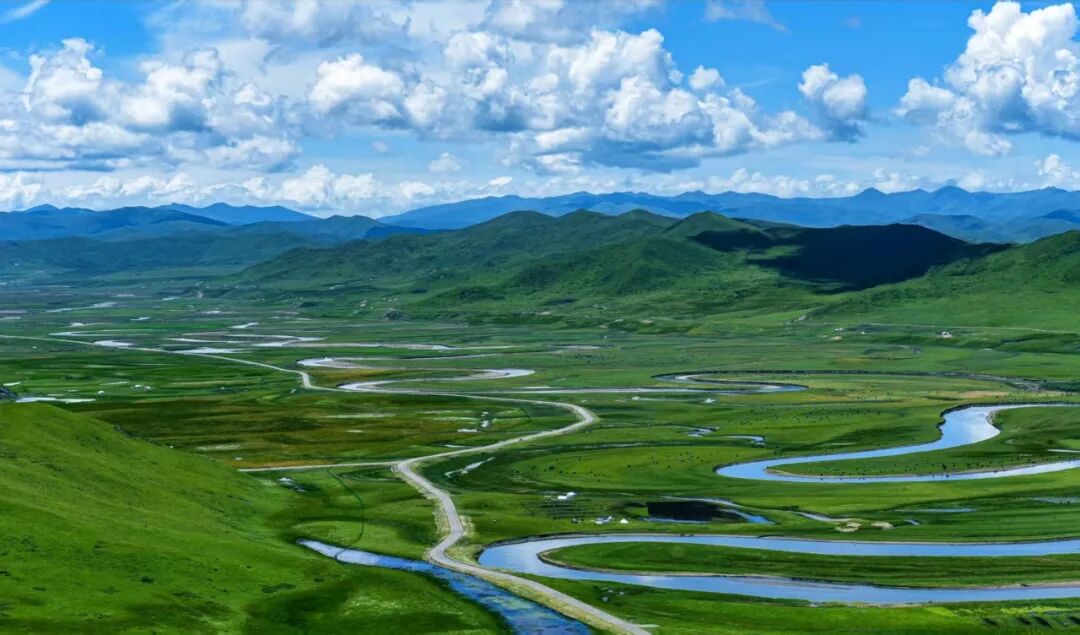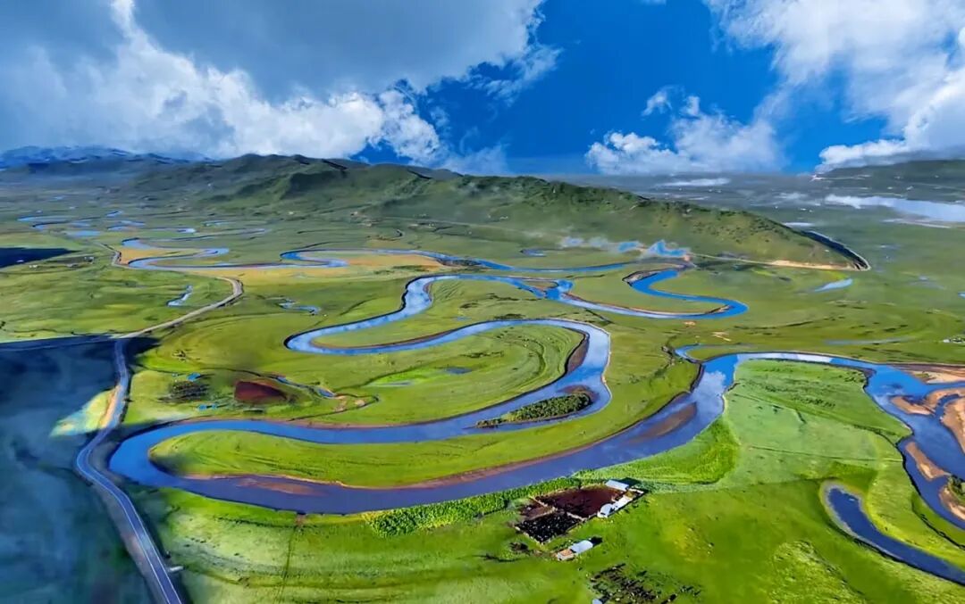 早拍摄黄河第一湾湿地晨曦光影(“玛曲”藏语意为“黄河”,以其独特的地理奇观黄河第一弯而闻名于世。这里是黄河九曲十八弯的起点,也是全球唯一以"黄河"命名的县域。),被黄河滋养的玛曲草原在入夏时调出了最美的颜色,一望无际的草原也迎来它的高光时刻。在湛蓝的天空下,辽阔的草原上牛羊成群,一湾浅浅的溪流划破草地,白色毡房炊烟袅袅,镶嵌在草原的湖泊清澈透亮,吸引着白天鹅、黄鸭等野生鸟类栖息在这片“世外桃源”。后接着前往阿万仓湿地拍摄,黄河在这里形成很多汊河和沼泽,使这片广袤的草原水草丰茂,条条溪流弯曲纵横,沼泽星罗棋布,在阳光下泛着银光,还有远处牛羊马群点缀其中,让人真切地感受到人与自然“天人合一”的和谐魅力。再途经“世界最大的转经筒”娘玛寺拍摄大藏经转经筒(高约50米,重约300吨,转经筒身部分为钛金制作,外部镶嵌浮雕佛像,花纹贴纯黄金金箔1160㎡,内藏有经书约11万册,是甘南藏地最具有代表意义的建筑,成功载入世界最大的大藏经转经筒吉尼斯纪录)。下午前往“千湾湿地,童话牧场”漫泽塘拍摄(含门票),在川西北高原的深处,黄河从巴颜喀拉山奔腾而下,即将进入四川时,放缓了脚步,在一片广袤的草原上蜿蜒流淌,形成了无数弯弯曲曲的河道。这里地势开阔、坡度平缓,河流纵横、湖泊星罗,绿草如茵、牛羊点点,从高处俯瞰,蜿蜒的贾曲河在草原上画出无数优美的弧线,形成了千回百转的河曲景观,宛如大地的指纹。夕阳西下时,金色的阳光洒在河面上,弯弯曲曲的河道如一条条金色的丝带,镶嵌在绿色的草原上,构成了“千湾湿地”的独特地貌。住:阿坝