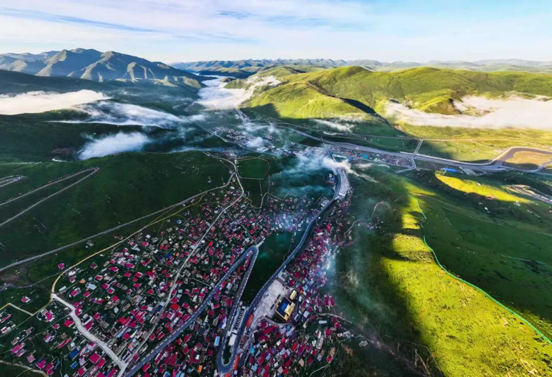 早餐后沿途择机拍摄阿坝沿线草原晨曦光影,碧绿如茵的草原、潺潺流淌的河流、草原上牛羊遍野、野花争相怒放、时有高耸入云的雪山,形成了雪域高原最美的景色,它有着“生态画卷•天赐久治”美誉。下午抵达全球最大的佛学院——色达五明佛学院拍摄,换乘景交车进入五明佛学院,走入山谷间漫山遍野的红色僧舍小屋,连绵数公里、密密麻麻的布满在山谷,营造了红色之海,蔚为壮观!佛学院内最高的山峰上有一个巨大的、金碧辉煌的坛城,彩色金幡、谷底和山梁上分布着几座寺庙和佛堂,建筑规模宏大,装饰考究而辉煌。在此倾听着天籁般的诵经声,融入在上万喇嘛、觉姆的红色海洋中,感受着藏传佛教的宗教神韵!走上山谷之上的【坛城】自由拍摄金碧辉煌的坛城、佛学院全景、光影等。住:色达
